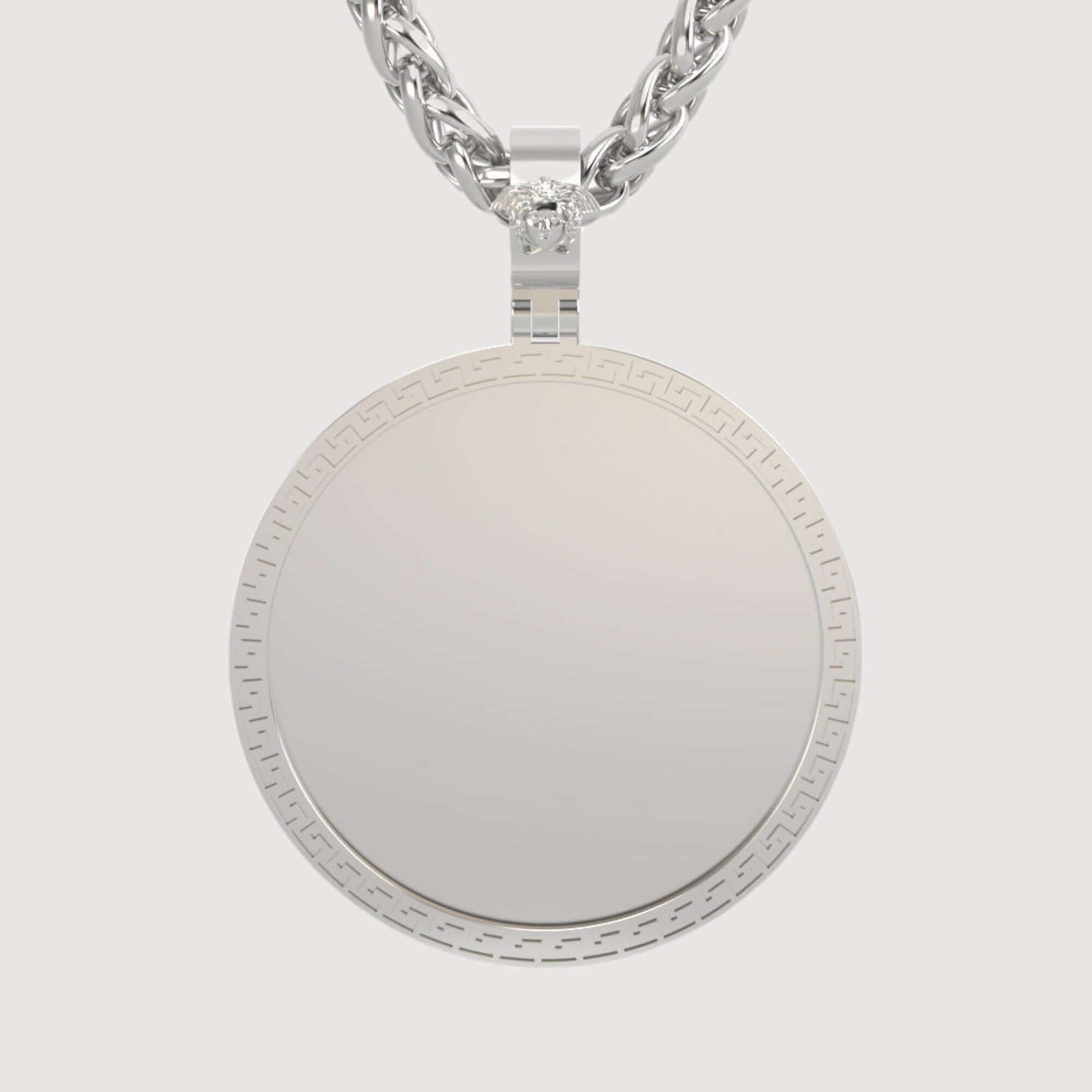Expertly crafted from solid 14K gold, this pendant delivers a rich, radiant shine and exceptional durability. The Greek Key pattern, etched into the border, adds depth and texture while symbolizing eternal love and continuity, enhancing its classic yet meaningful appeal.