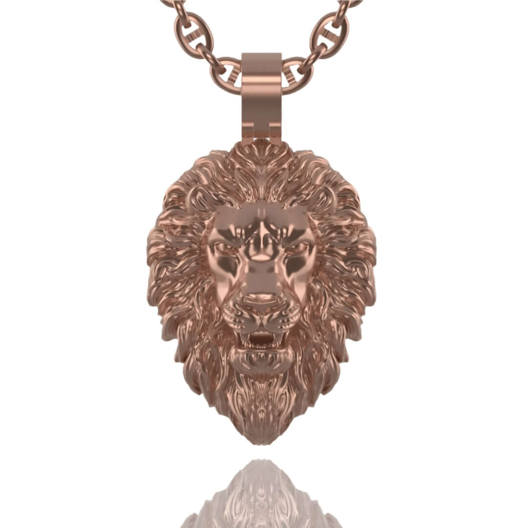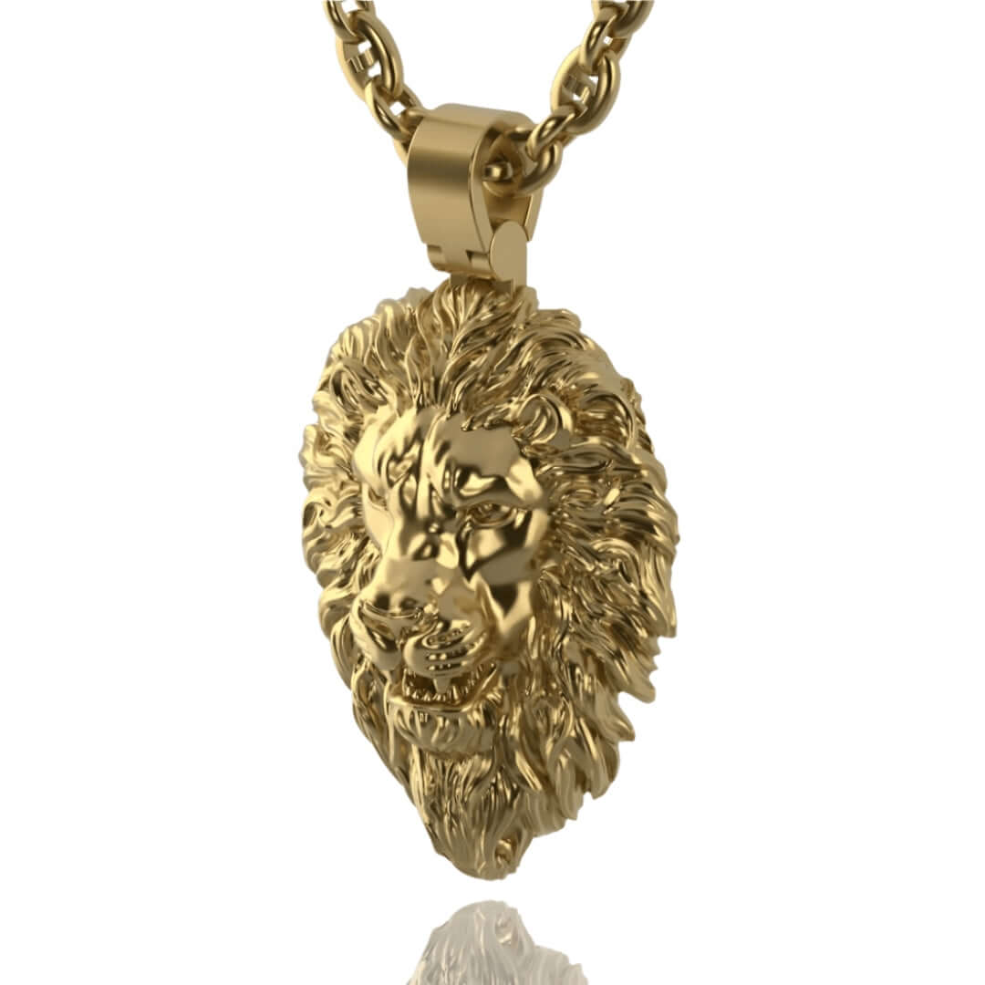 Alt="Exude confidence with the 14K Gold Lion Head Pendant. Features a detailed lion head design in radiant 14K gold, symbolizing strength, courage, and sophistication."