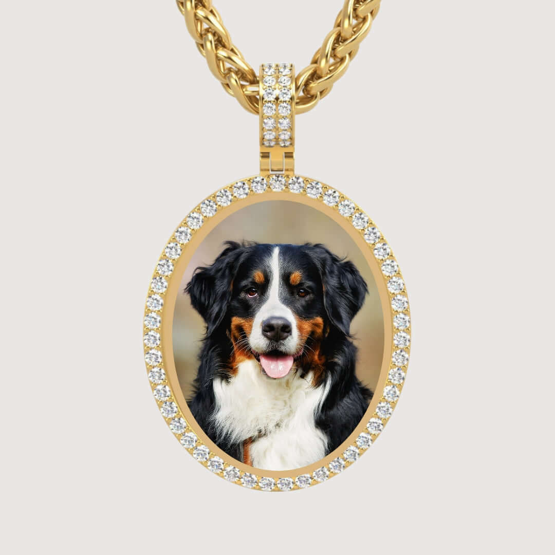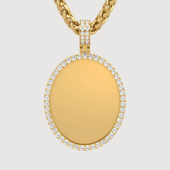 Alt="Keep cherished memories close with the 14K Gold Oval Picture Pendant. Features radiant 14K gold, diamond accents, and customizable space for your treasured photo."