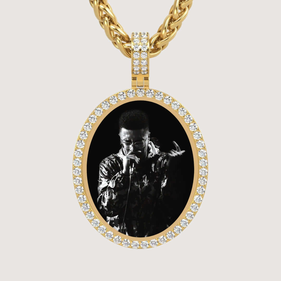 Perfect as a thoughtful gift or a personal accessory, this gold pendant combines timeless craftsmanship with heartfelt sentiment. The Oval Picture Pendant is a sophisticated way to celebrate precious moments, making it a treasured addition to any jewelry collection.
