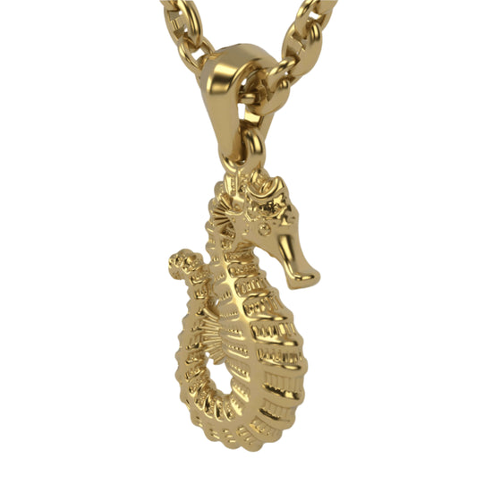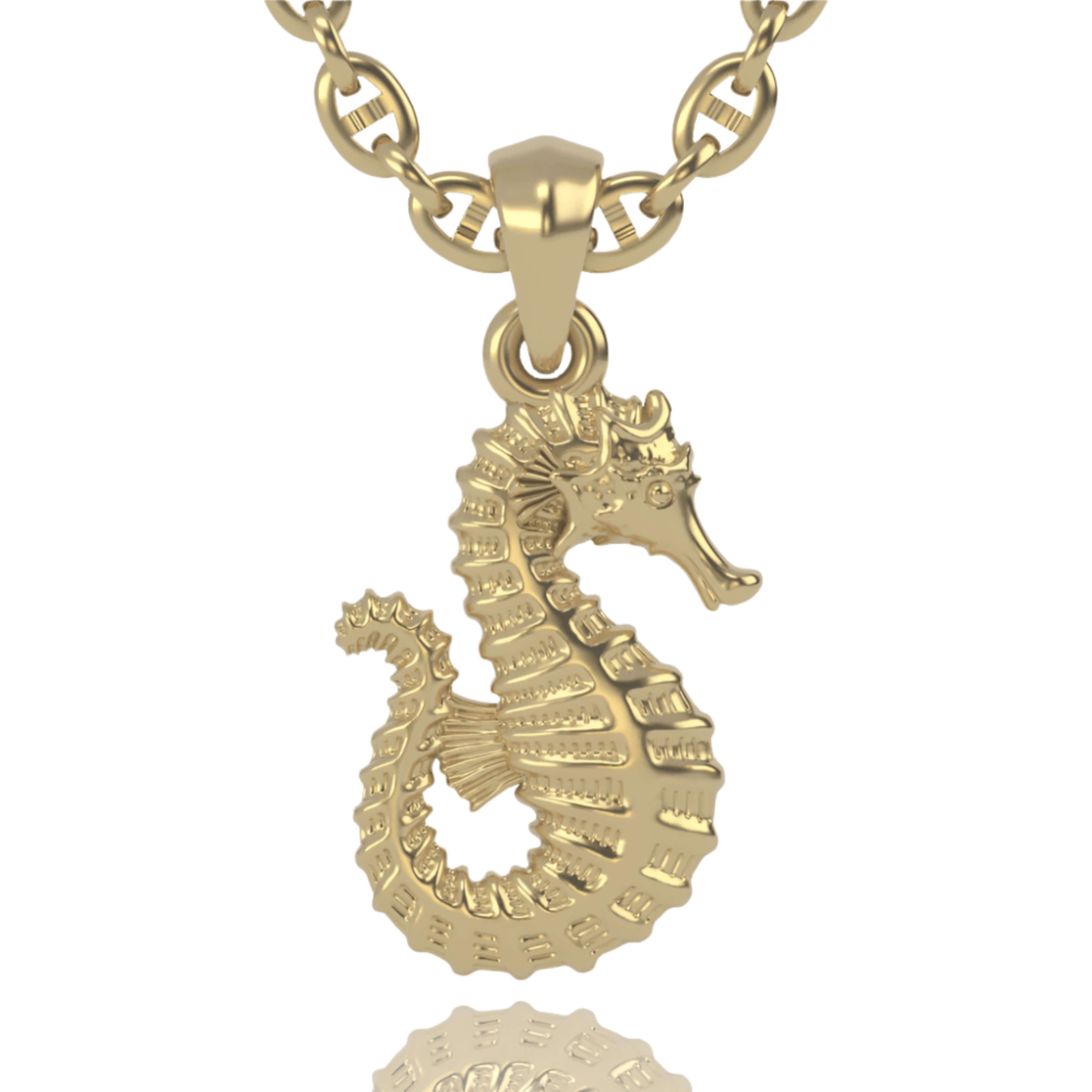 The 14K Gold Seahorse Pendant is a delicate and charming piece that symbolizes grace, strength, and serenity. Crafted in radiant 14K gold, this intricately detailed pendant captures the unique beauty of a seahorse, making it a standout accessory for ocean lovers and those who appreciate elegant, nature-inspired designs.