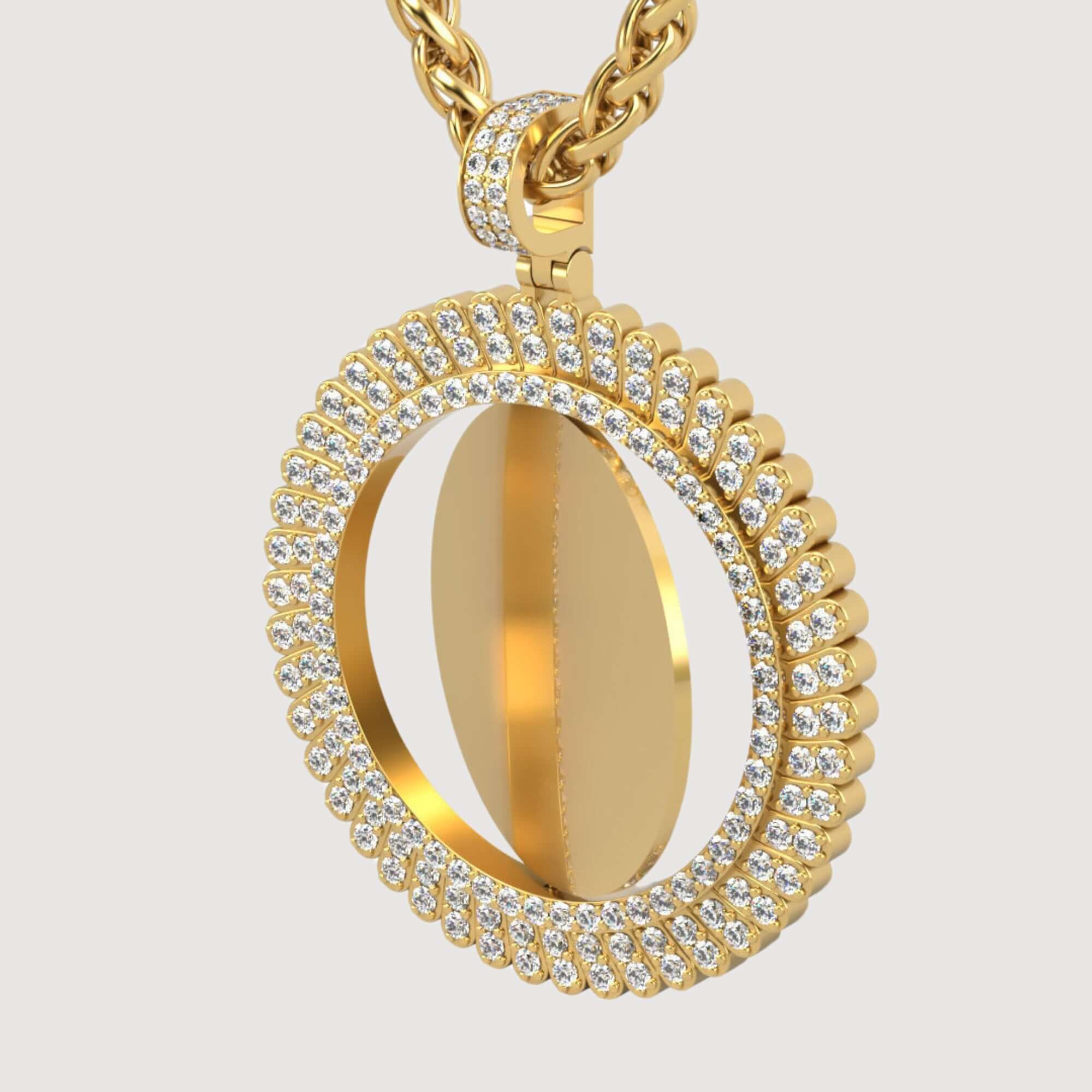 This pendant is skillfully crafted from solid 14K gold, known for its radiant shine and durability. The sunburst-inspired frame, with its polished finish, creates an eye-catching contrast against the brilliance of the diamonds, ensuring a luxurious and timeless appeal.