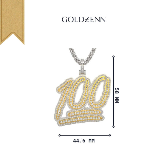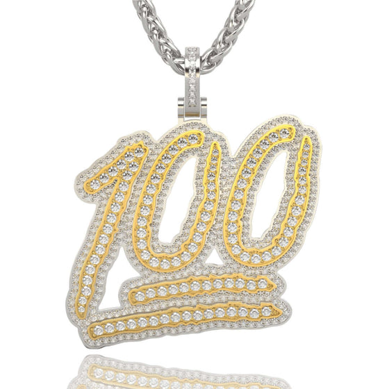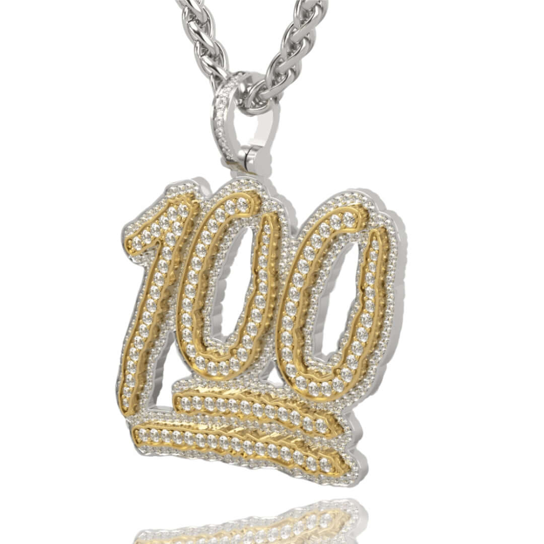 14k Two-Tone Gold '100' Emoji Pendant with Diamonds