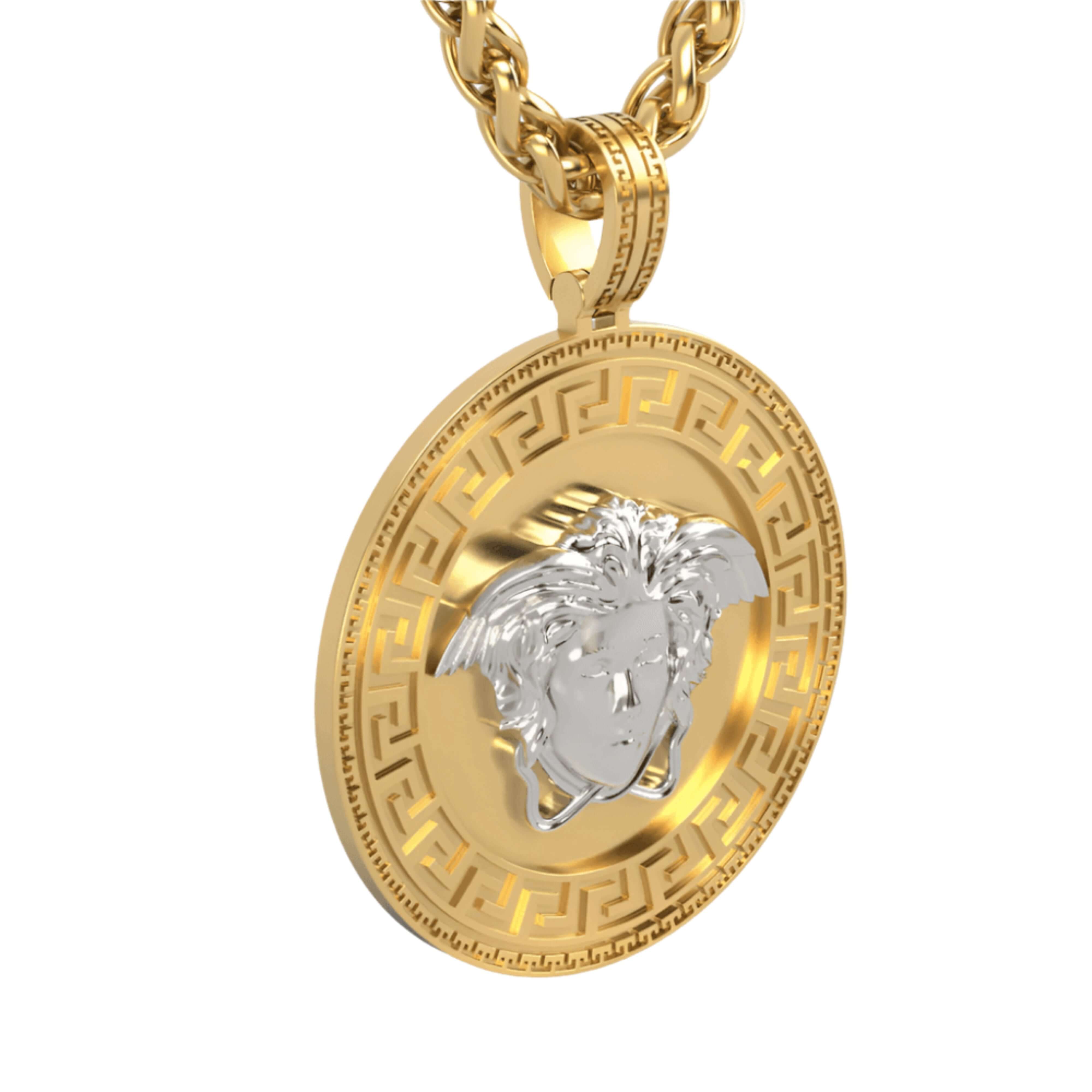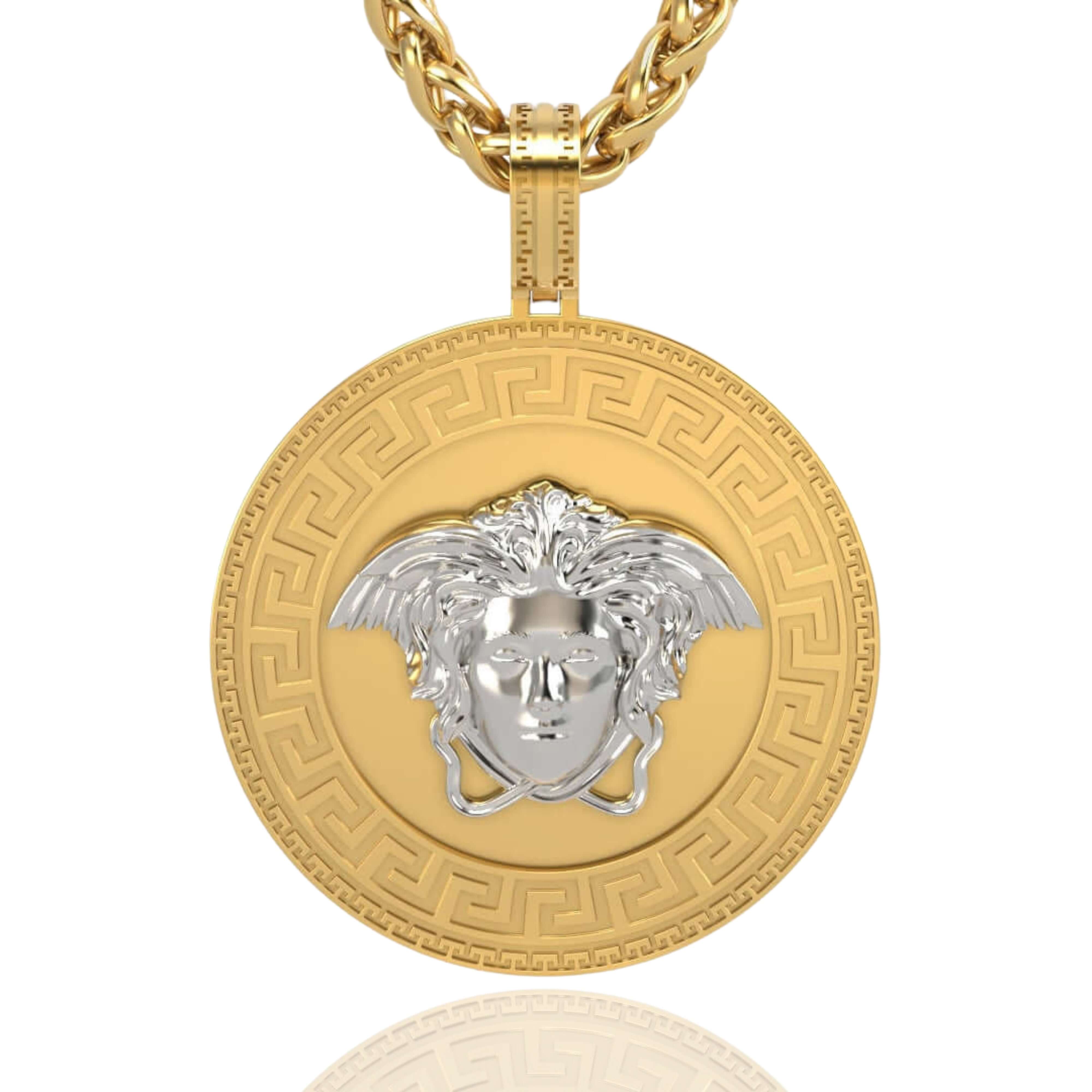 Perfect for pairing with your favorite chain, this gold pendant is ideal for daily wear or special occasions. The Two-Tone Gold Medusa Pendant combines timeless mythology with modern elegance, making it a standout addition to any jewelry collection.