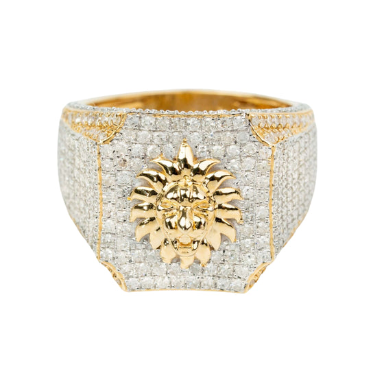Unleash your bold style with the 2.43 CTW Cluster Lion Diamond Ring in 14K Gold. This striking ring features a majestic lion head design, encrusted with 2.43 carats total weight of brilliant diamonds, creating a captivating and powerful look. Crafted from 14K solid gold, it offers durability and a polished finish that enhances the intricate detailing. Perfect as a gold ring for men, this piece symbolizes strength and leadership, making it a standout accessory for special occasions or everyday wear.