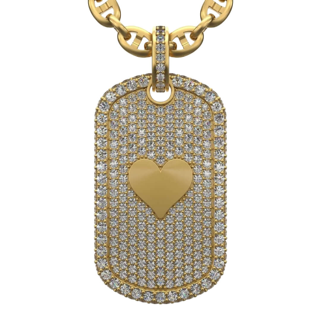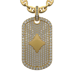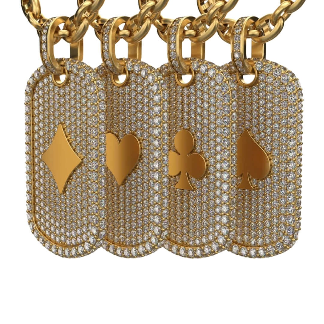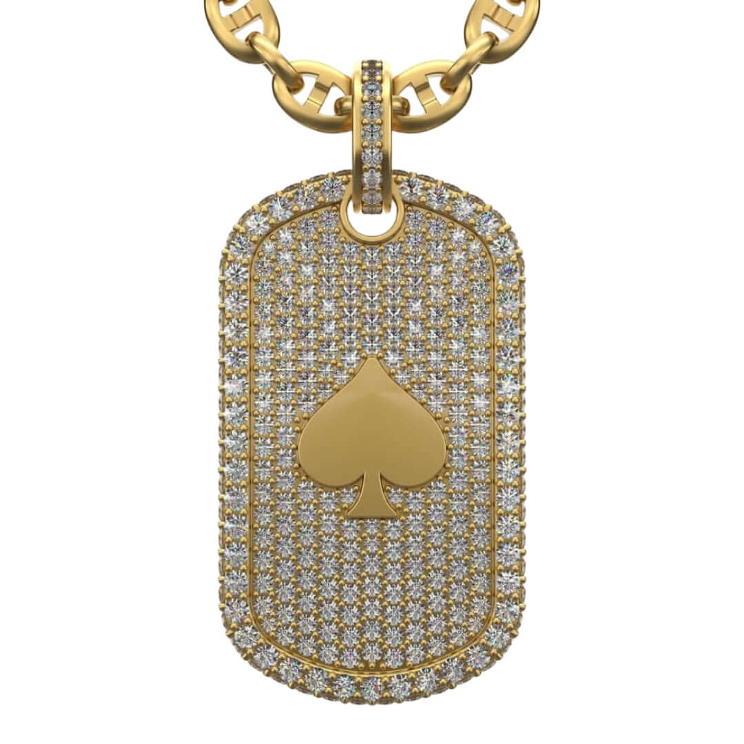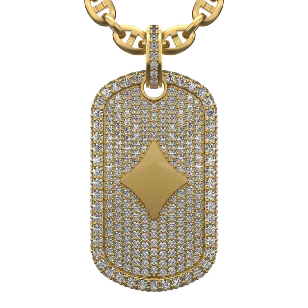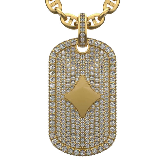 Alt=" Discover the 14K Gold Diamond Card Symbols Dog Tag Pendant. Crafted in 14K gold with dazzling diamonds, customizable with Moissanite, lab-grown, or natural stones."