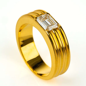 alt=" Discover bold elegance with the 2 CT Radiant-Cut Diamond Statement Ring in 18K yellow gold. A sleek, modern design perfect for special occasions or everyday luxury. "