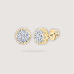 10k Gold Round Diamond Cluster Earrings 3/4 Cttw