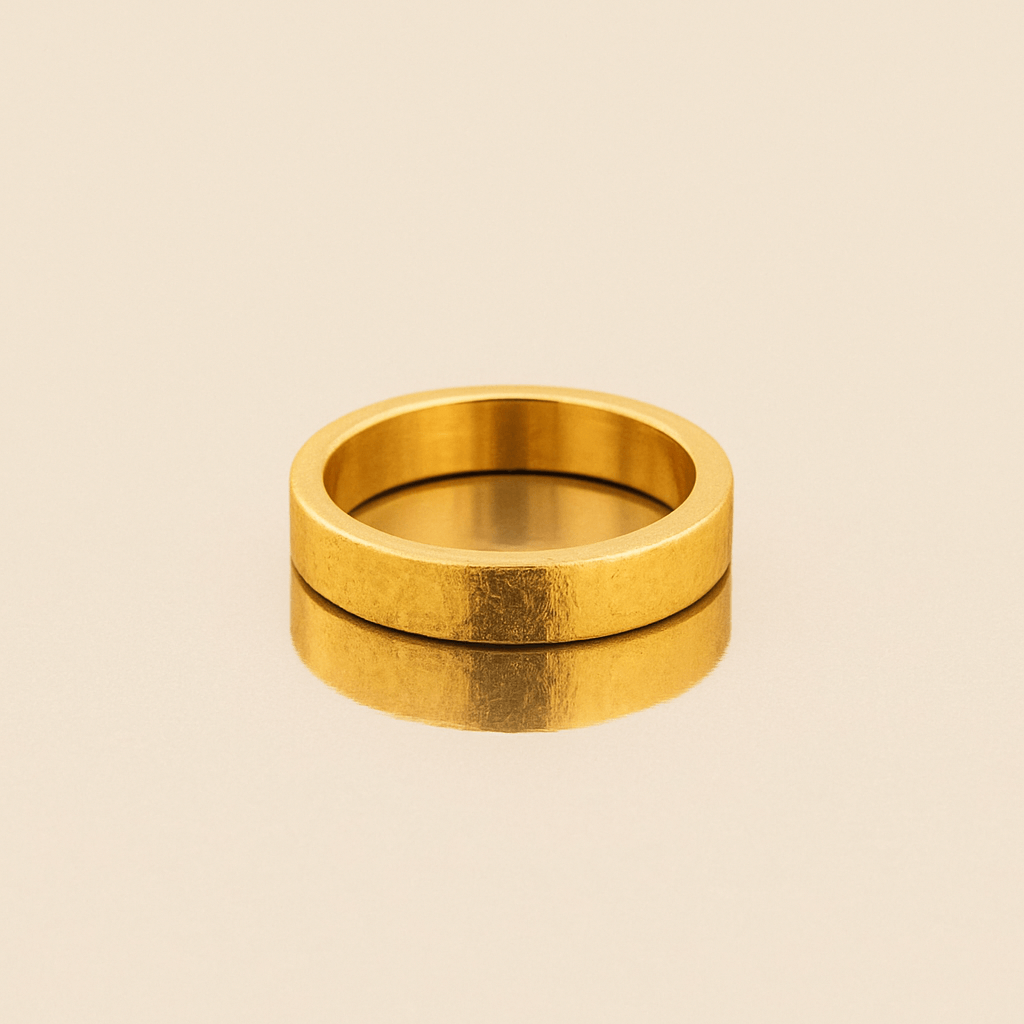 Alt="Discover this 4 mm flat band ring in 24k gold, featuring a sleek flat profile and mirror polish. A minimalist staple for everyday elegance—shop now!"