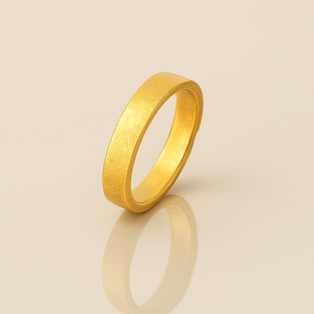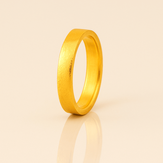 Crafted from 99.9% pure 24k gold, this 4 mm Flat Band Ring features a sleek, modern flat profile with a polished mirror finish and comfort-fit interior. Its minimalist design makes it perfect as a wedding band, stackable staple, or everyday statement.