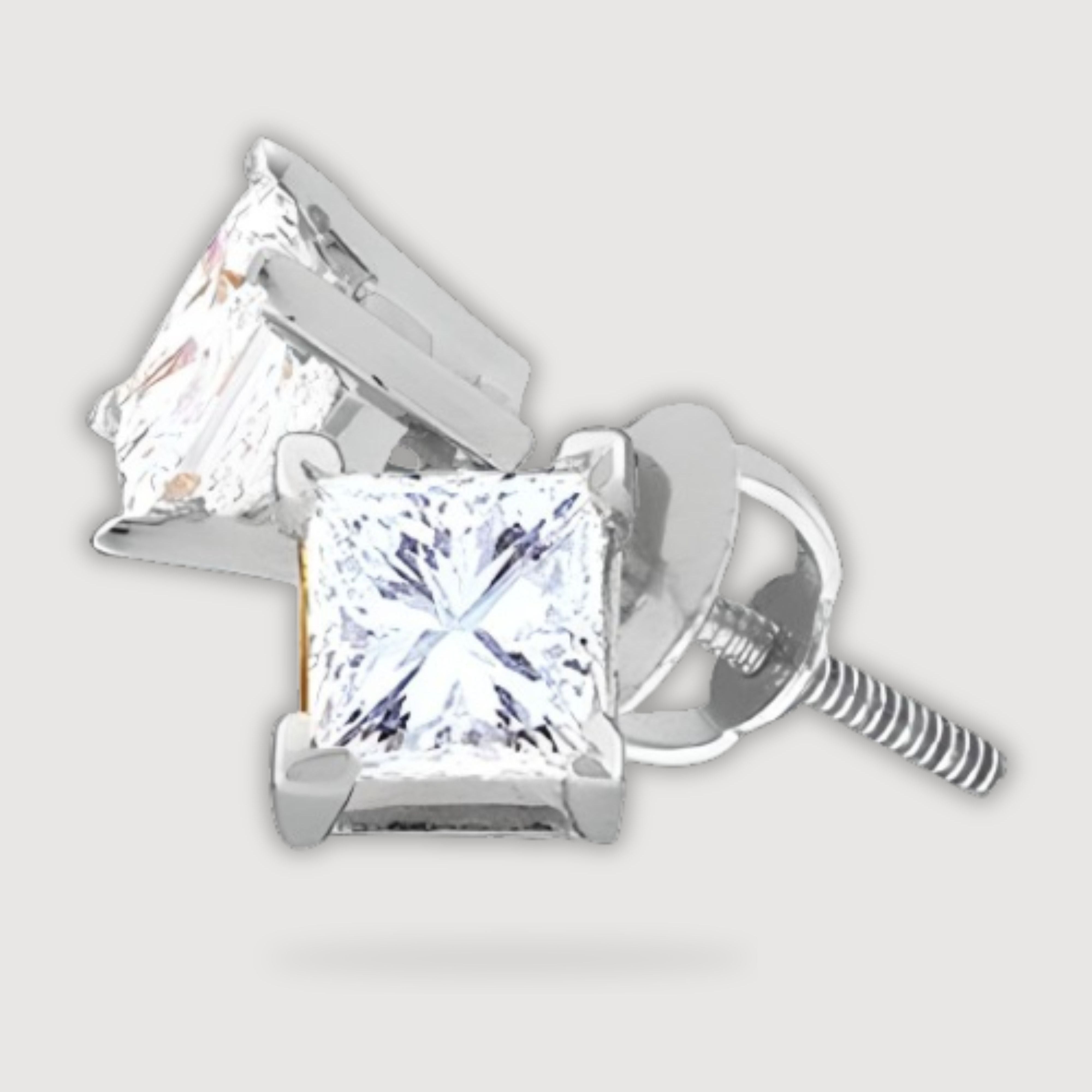 5/8CTW Princess Cut Diamond Solitaire Stud Earrings - 14k White Gold