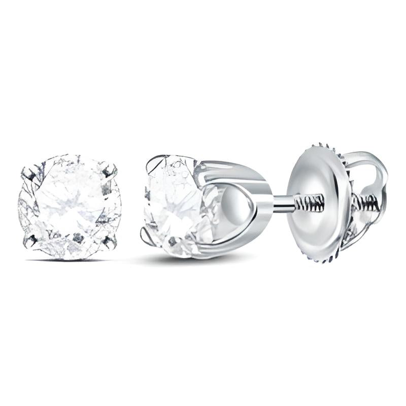 5/8CTW Round Diamond Excellent Solitaire Earrings - 14k White Gold