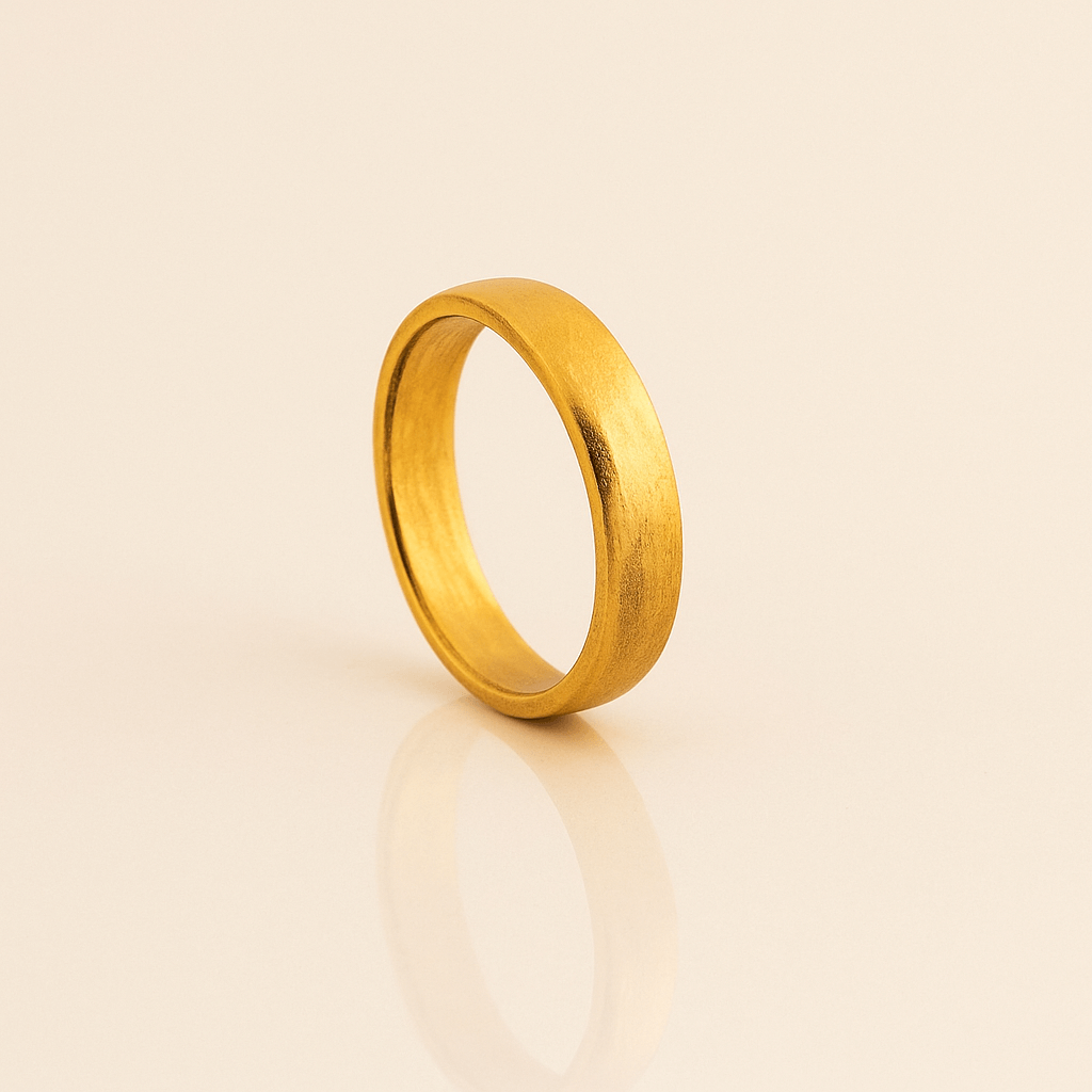These rings are forged from 24 karat gold—the purest form of gold, containing 24 parts gold in every 24 parts of metal. Unlike lower-karat alloys, no other metals are blended in, so you experience gold in its most pristine form. Historically prized for its rarity, malleability, and chemical inertness, 24 karat gold not only symbolizes wealth and sophistication but also serves as a lasting store of value.