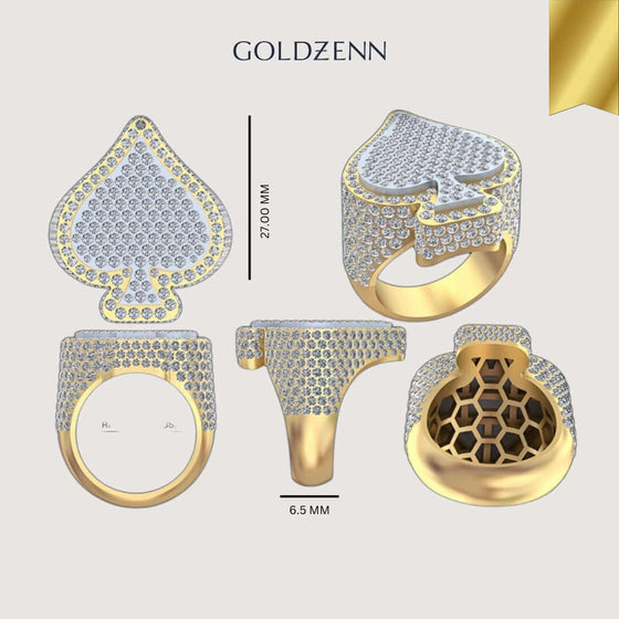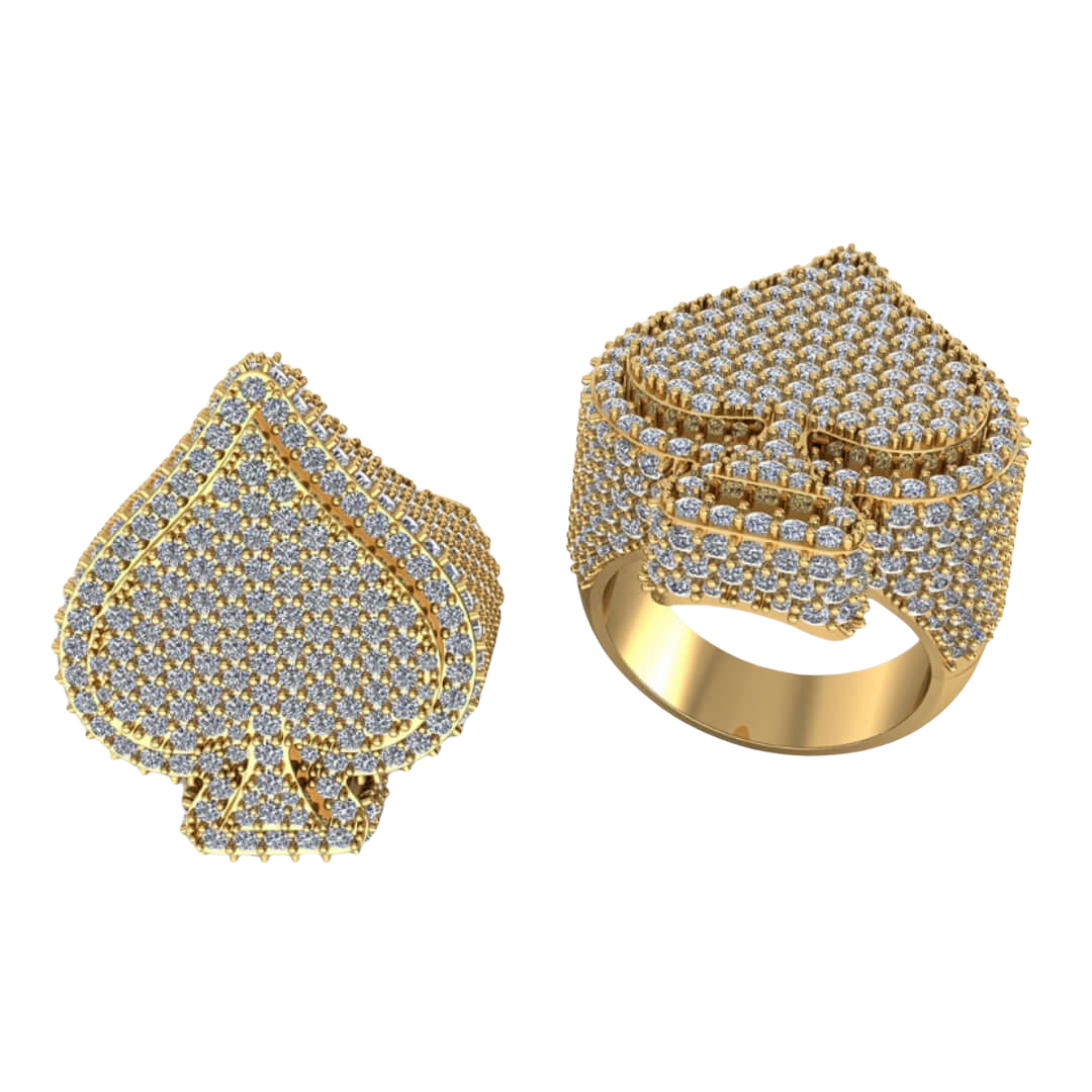 alt=" Shop the Ace of Spades Diamond Ring, featuring 6.08 CT lab-grown diamonds. Available in 10K, 14K, and 18K gold. Bold diamond ring for men. Ships in 3-4 weeks. "