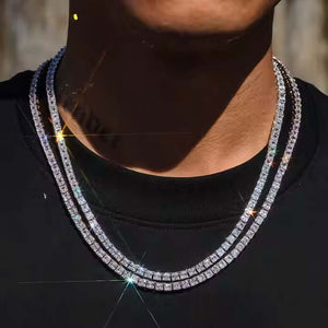 Sterling silver (92.5% pure silver) is a premium metal, strong enough for daily wear and ideal for moissanite settings due to its high polish and affordability. Combined with rhodium plating, the chain achieves a platinum-like finish, ensuring that your piece retains its brilliance over time.
