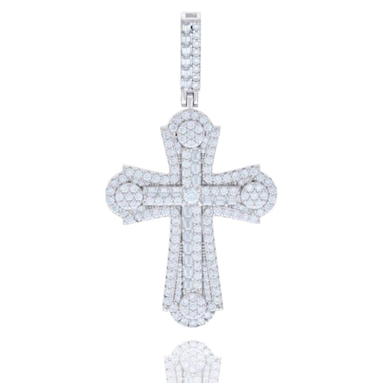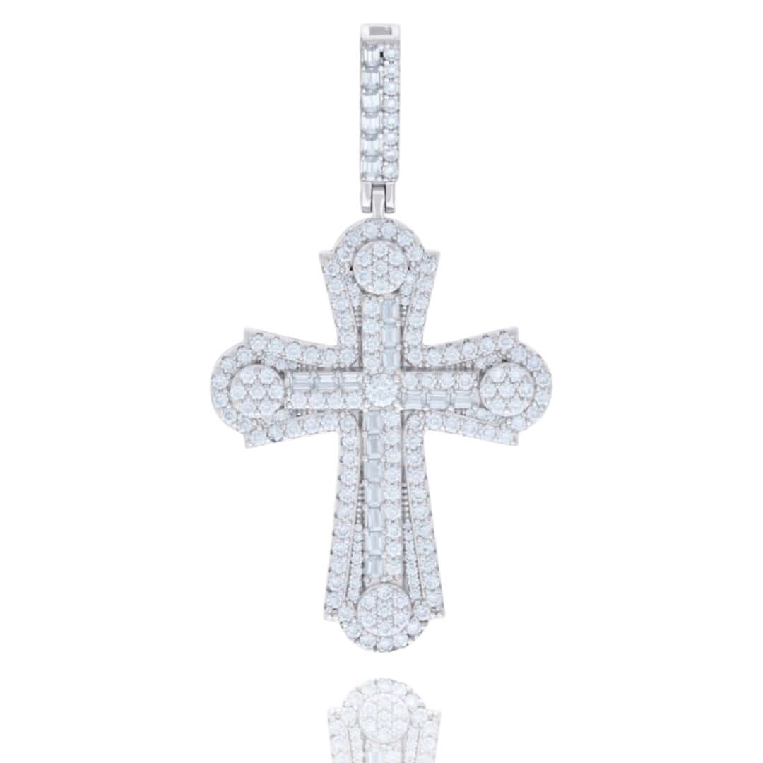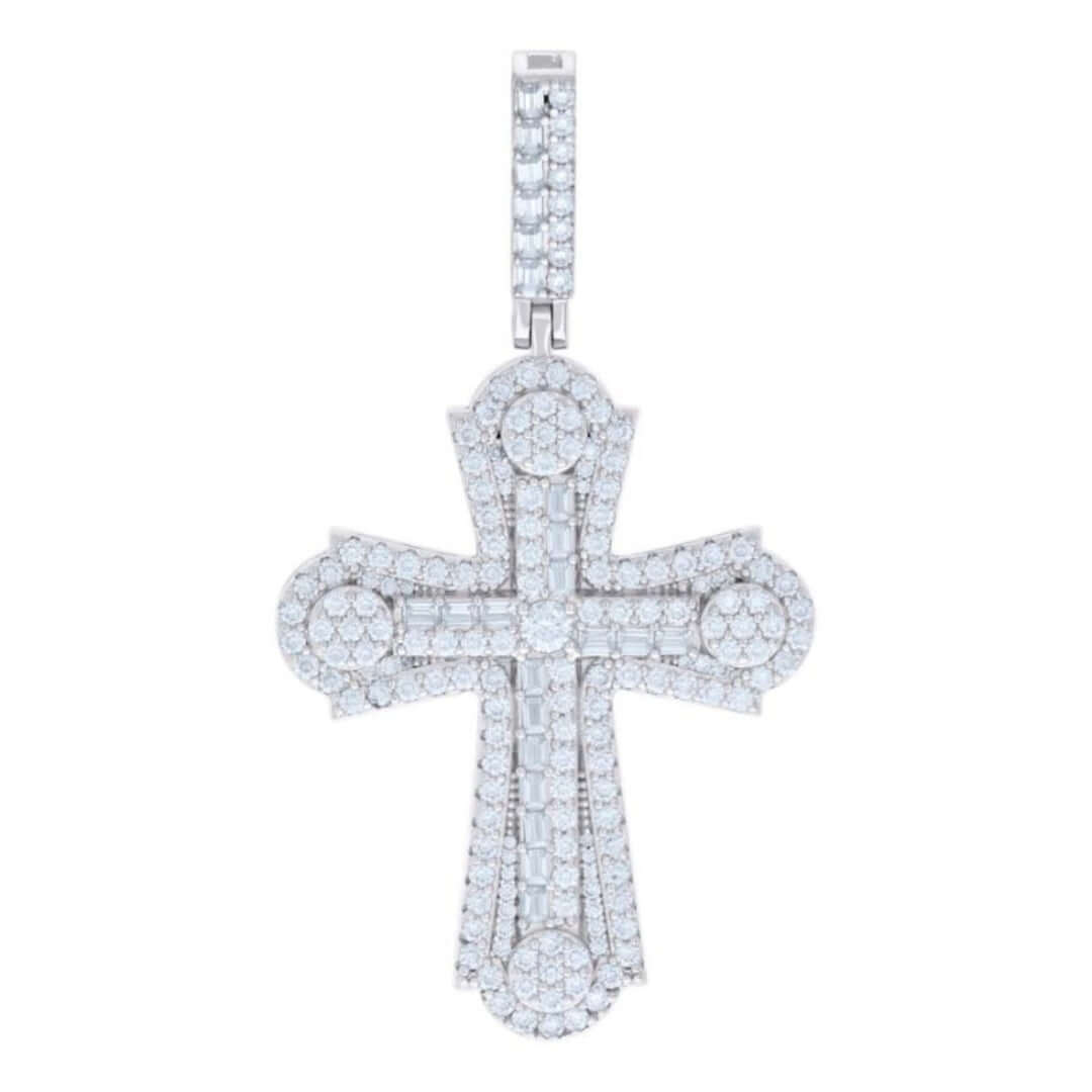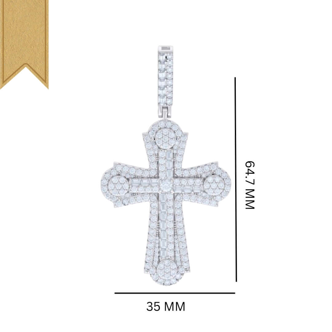 Alt="Crafted in 925 silver with VVS D-color moissanites, GOLDZENN’s Religious Cross Pendant symbolizes faith. Hypoallergenic, tarnish-resistant & elegantly detailed."
