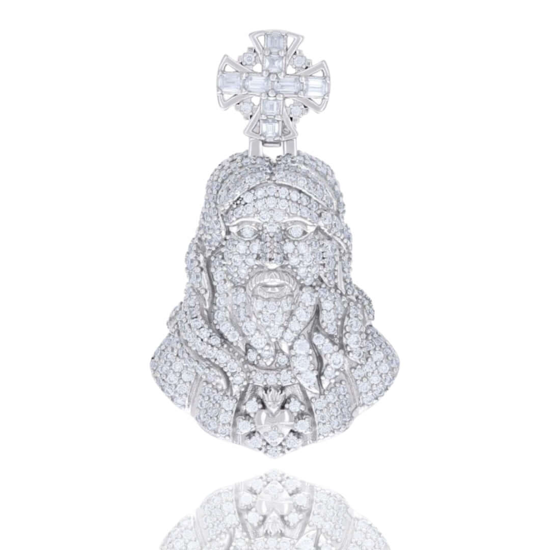 Baguette Moissanite Cross Jesus Charm Pendant