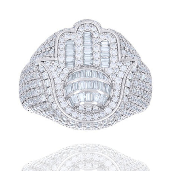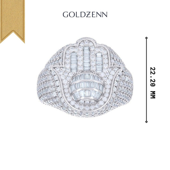 Baguette Moissanite Hamsa Symbol Religious Ring