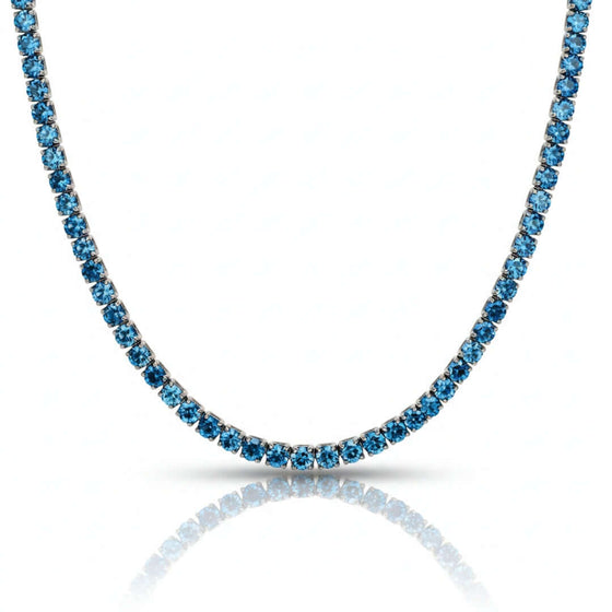 Together, the vivid blue stones and precious metal foundation deliver a high-end, eye-catching chain built for longevity and standout style.