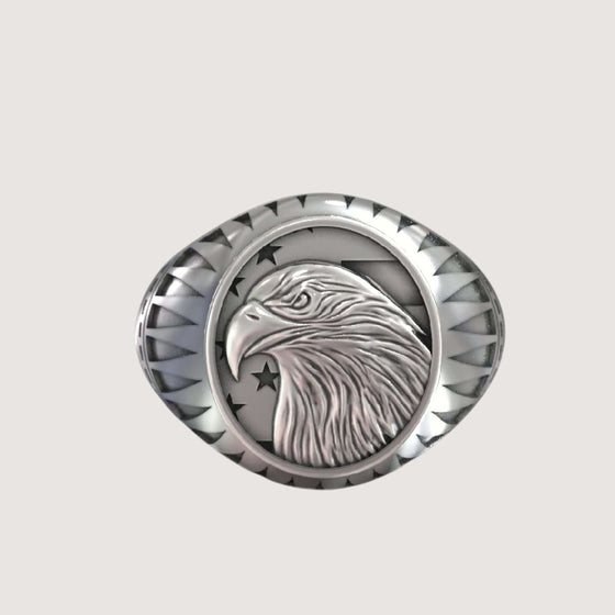 alt=" The Bold Eagle Liberty Ring features a striking eagle design paired with Liberty-inspired details. A powerful statement piece for bold individuals. "