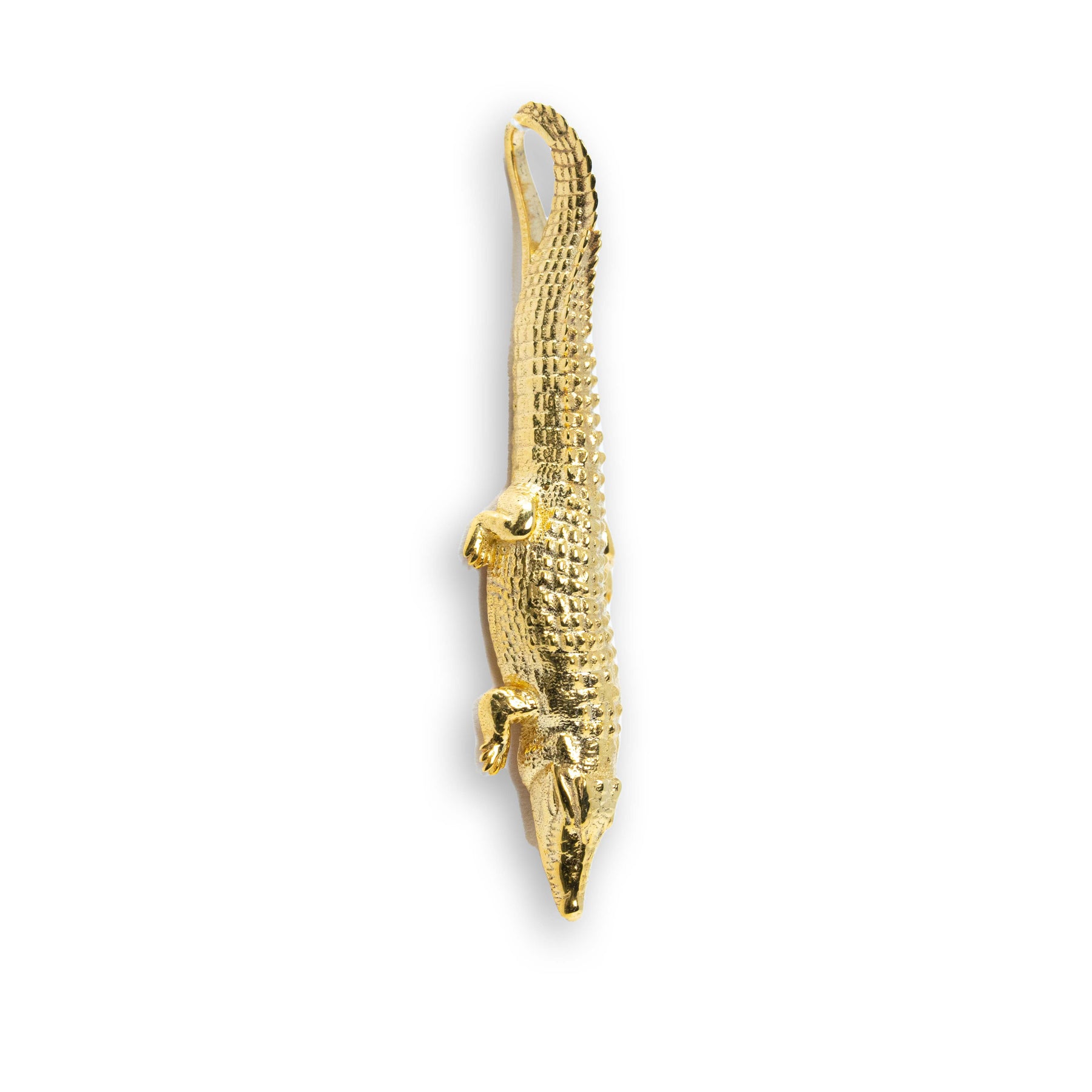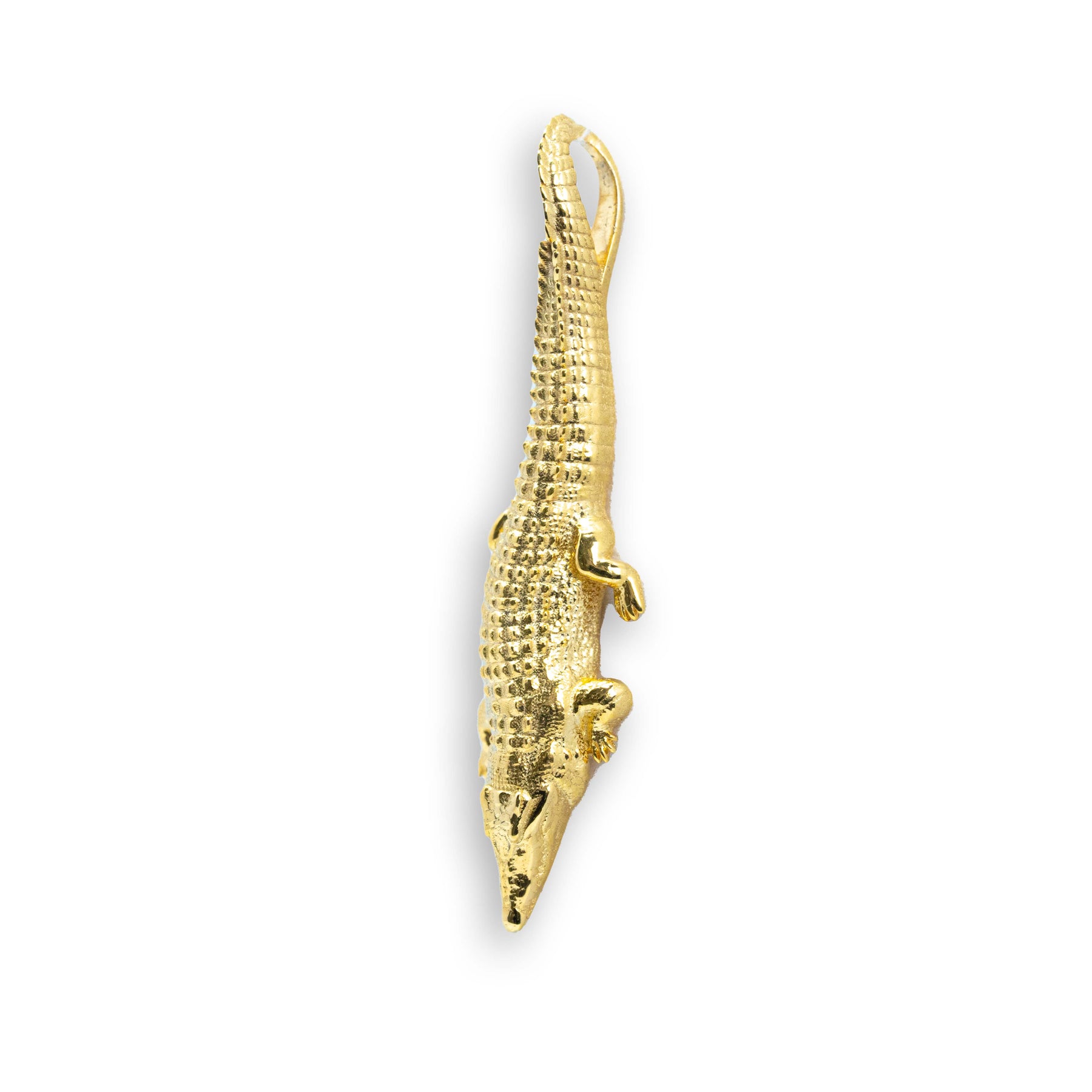Alt="Make a statement with this bold 14K solid yellow gold crocodile pendant, handcrafted to perfection for a look that exudes power, luxury, and timeless style."