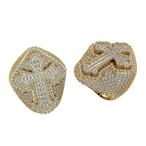 The Cross Diamond Signet Ring is a statement of faith and luxury, featuring an impressive 7.20 CT of baguette and Pavé diamonds. This men's gold ring is designed for those who want to stand out with bold elegance. The intricately crafted cross design sits atop a wide band, creating a striking blend of sophistication and power. Available in 10K, 14K, and 18K white gold, yellow gold, and rose gold, this piece is perfect for those searching for gold men's rings or unique gold diamond rings that exude timeless appeal.