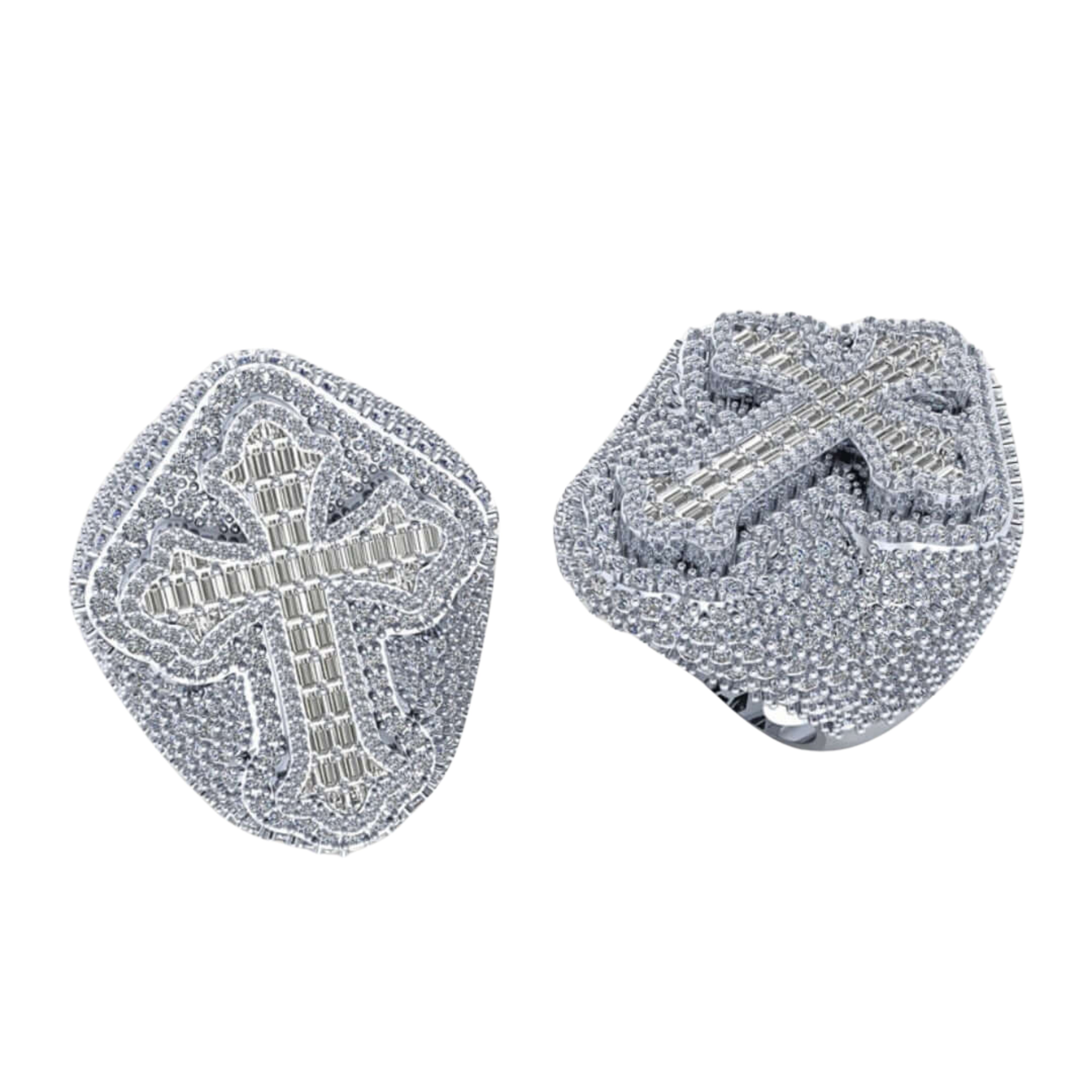 Cross Diamond Signet Ring – 7.20 CT Baguette and Pavé Design