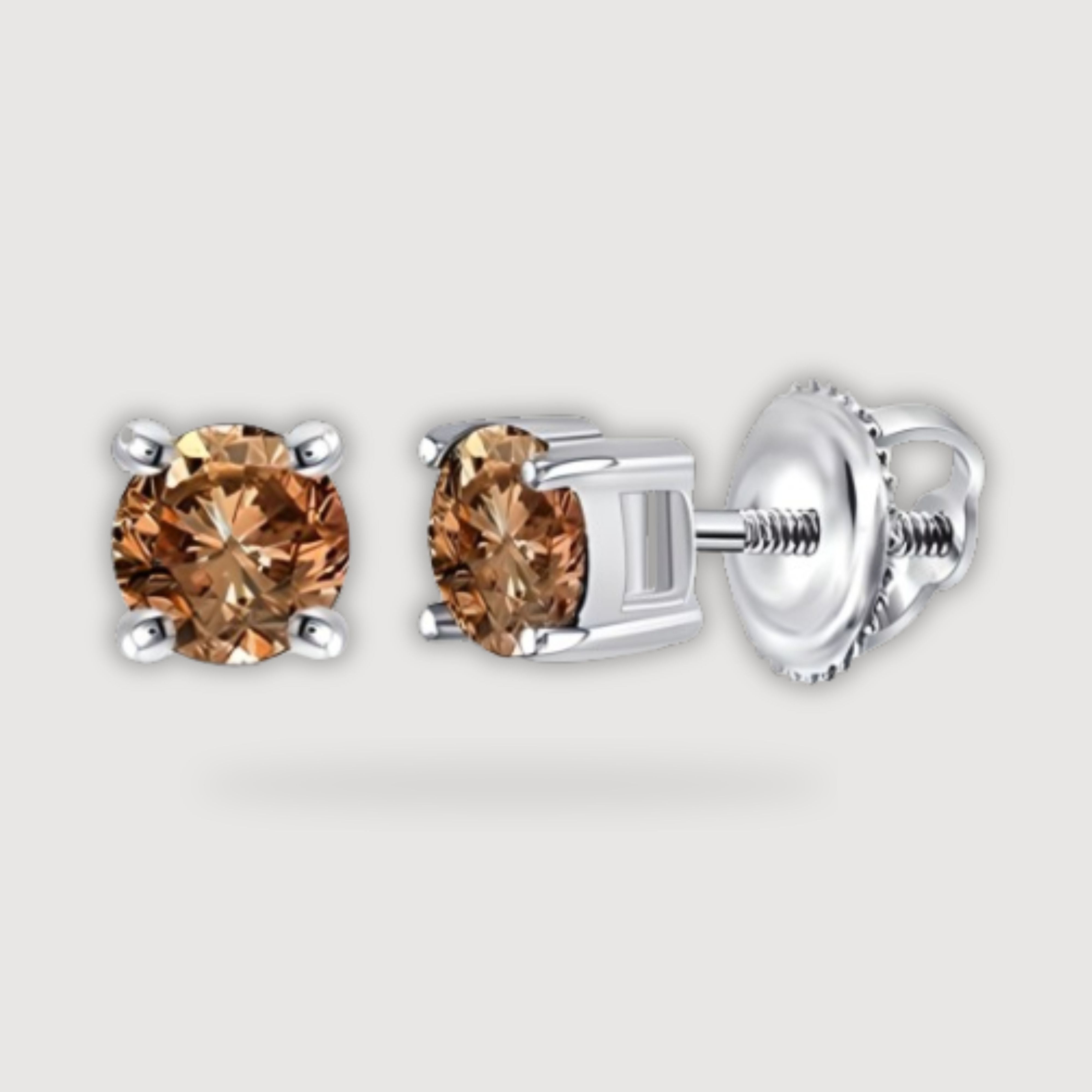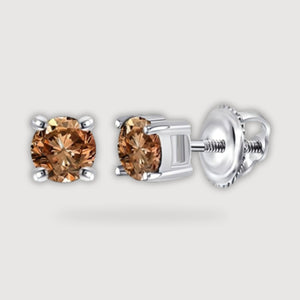 1CTW Round Brown Diamond Solitaire Stud Earrings - 10K White Gold