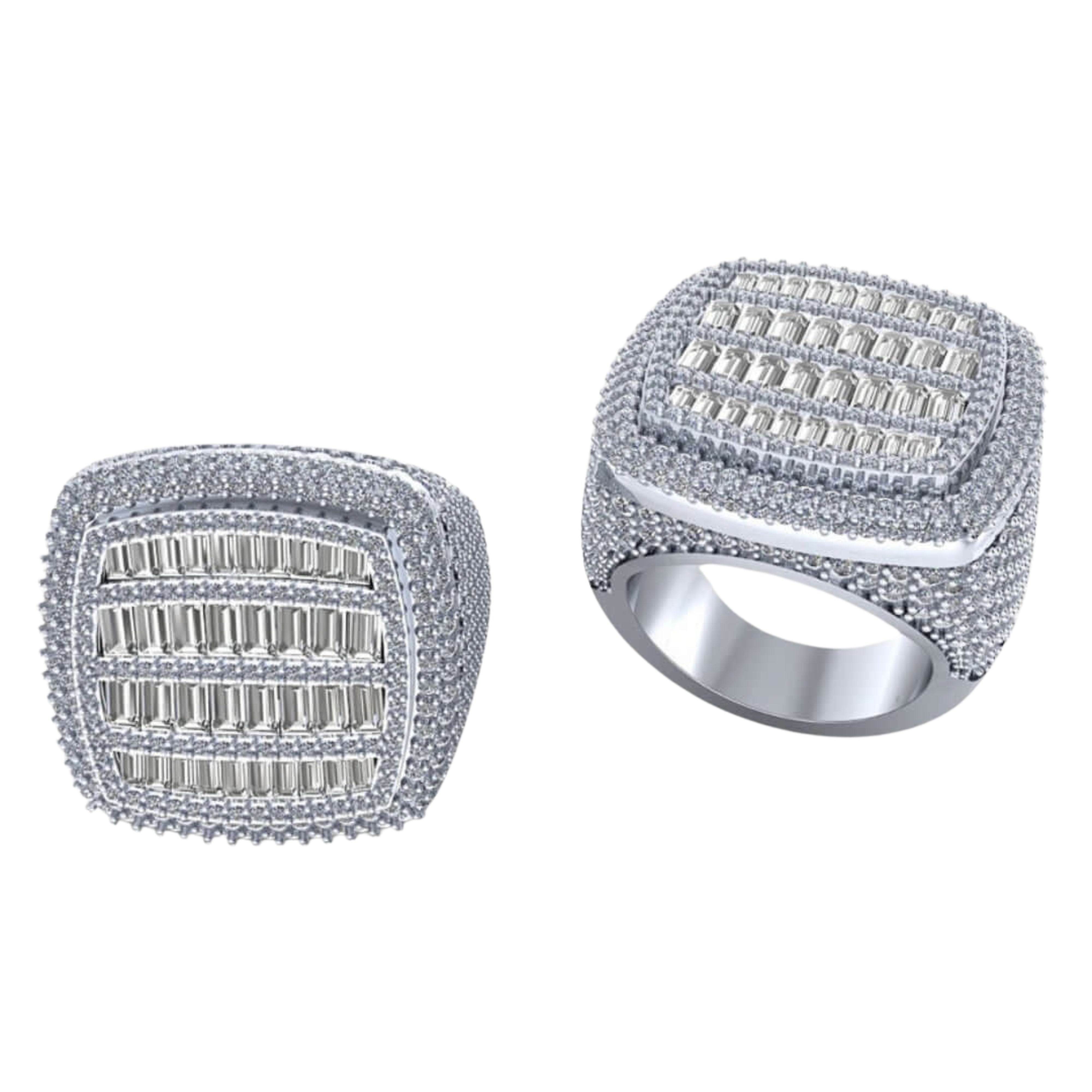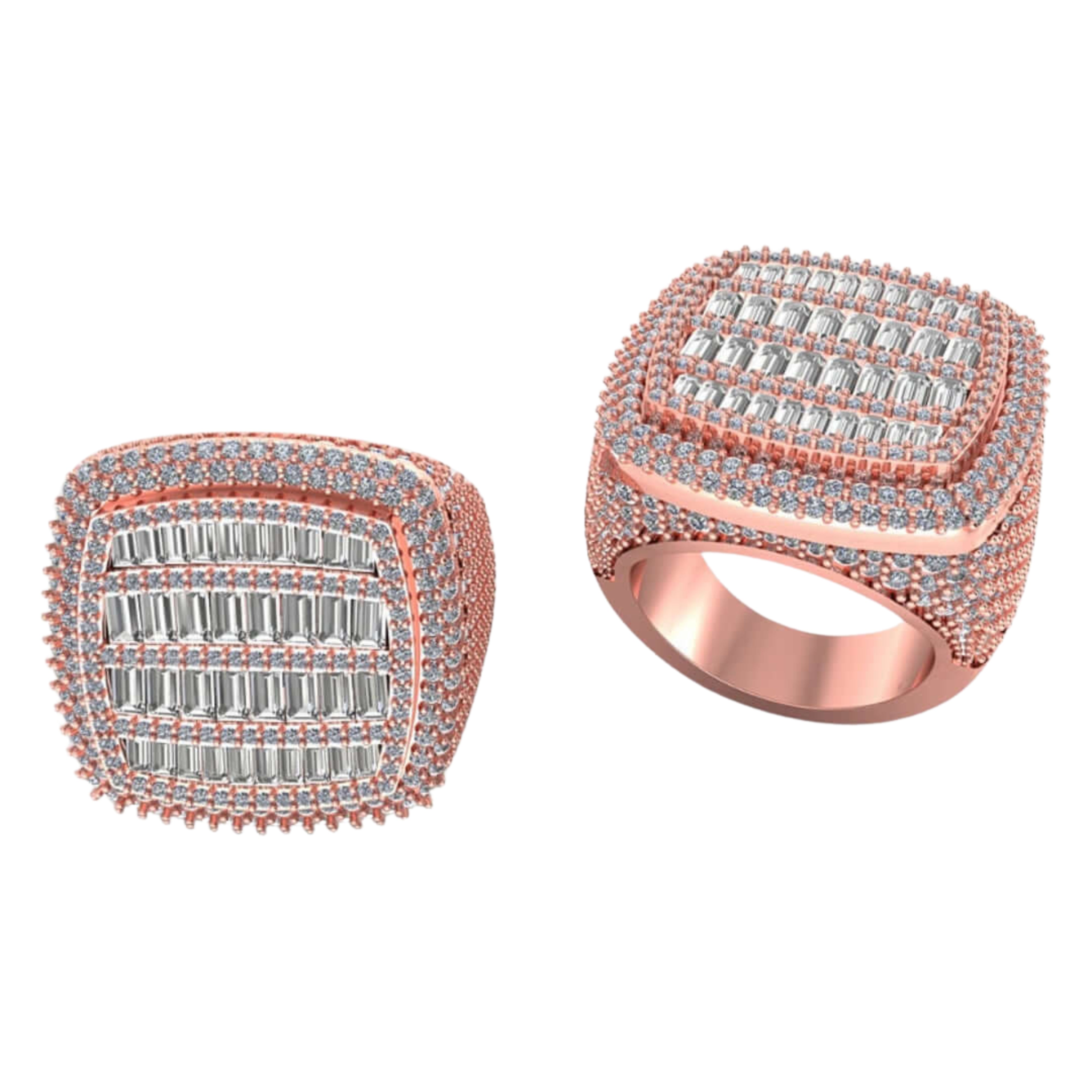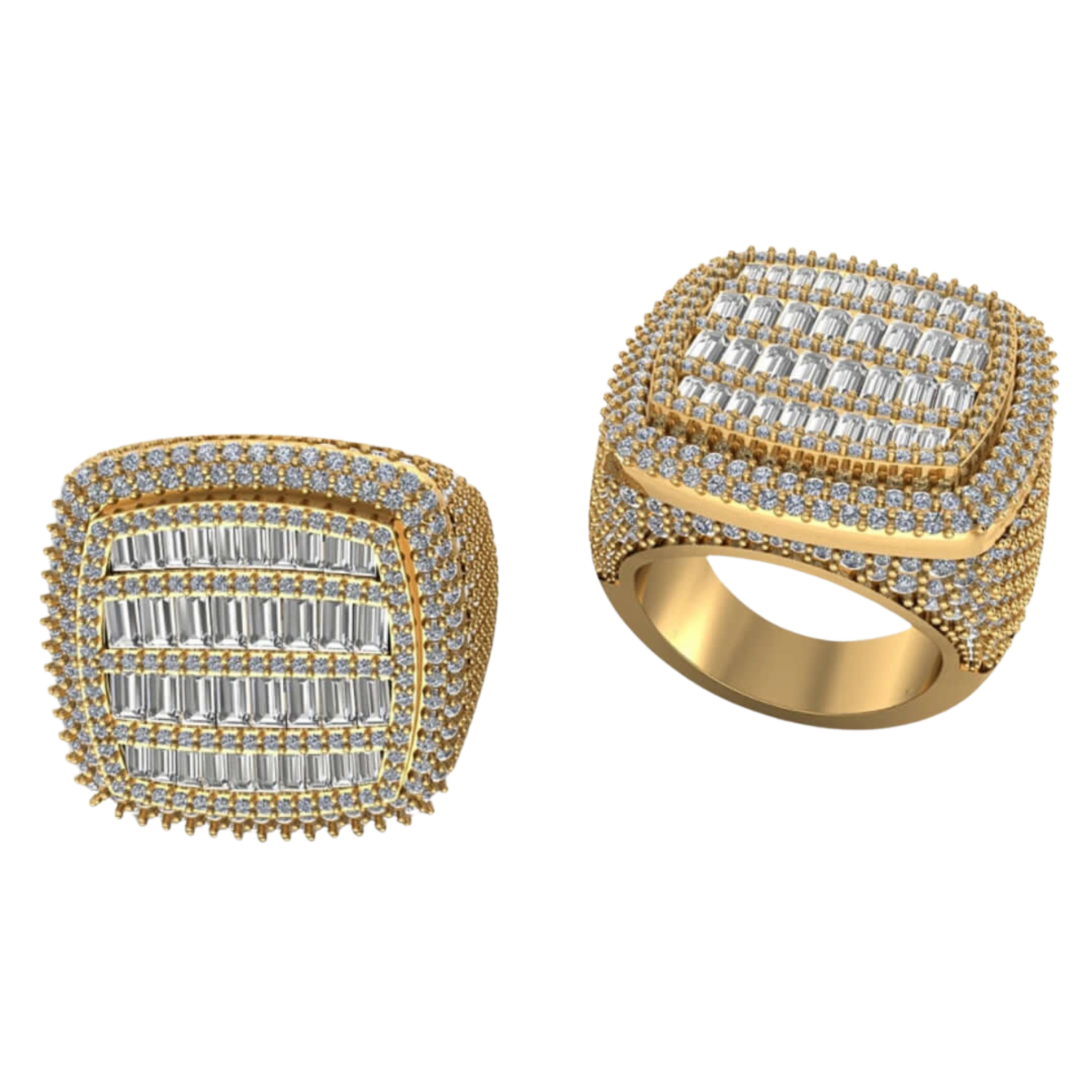 alt=" Shop the Cushion Baguette Diamond Ring with 6.07 CT lab-grown diamonds. Available in 10K, 14K, and 18K gold. Luxurious gold men's rings. "
