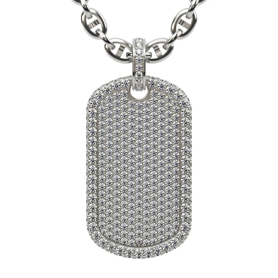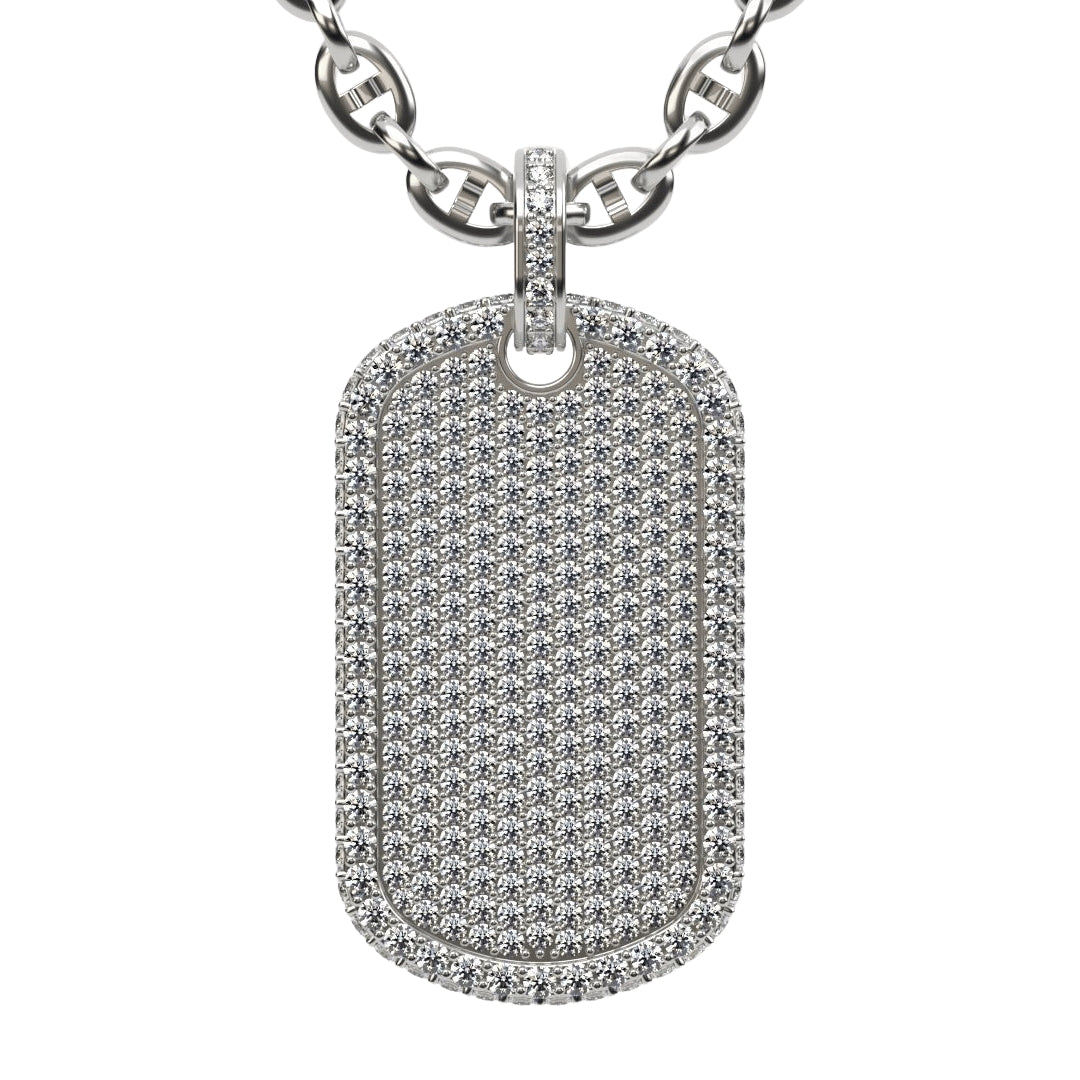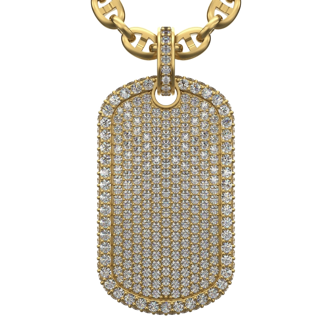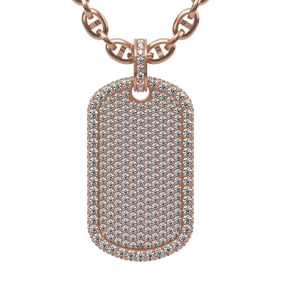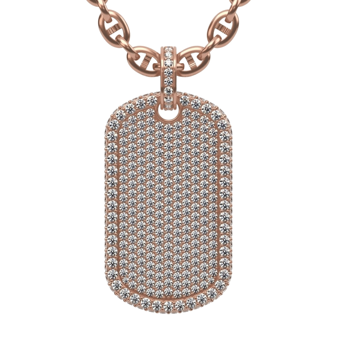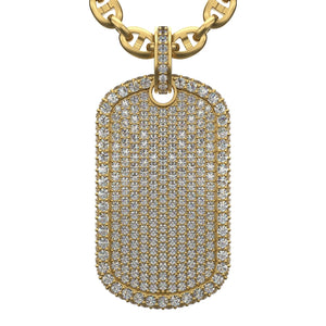 Embrace a powerful style with this 2.87 CTW Diamond Dog Tag Pendant, crafted from luxurious 14K gold. Each diamond is meticulously set to create a striking shine, embodying strength and sophistication in every detail. Designed as the ultimate statement piece, this pendant celebrates your success and resilience, making it a unique addition to any jewelry collection. Whether worn solo or layered, its bold presence complements both urban and upscale fashion, perfect for those who demand a blend of luxury and edge. Ideal for those who’ve earned their place, this custom pendant speaks to a life lived with purpose and distinction.