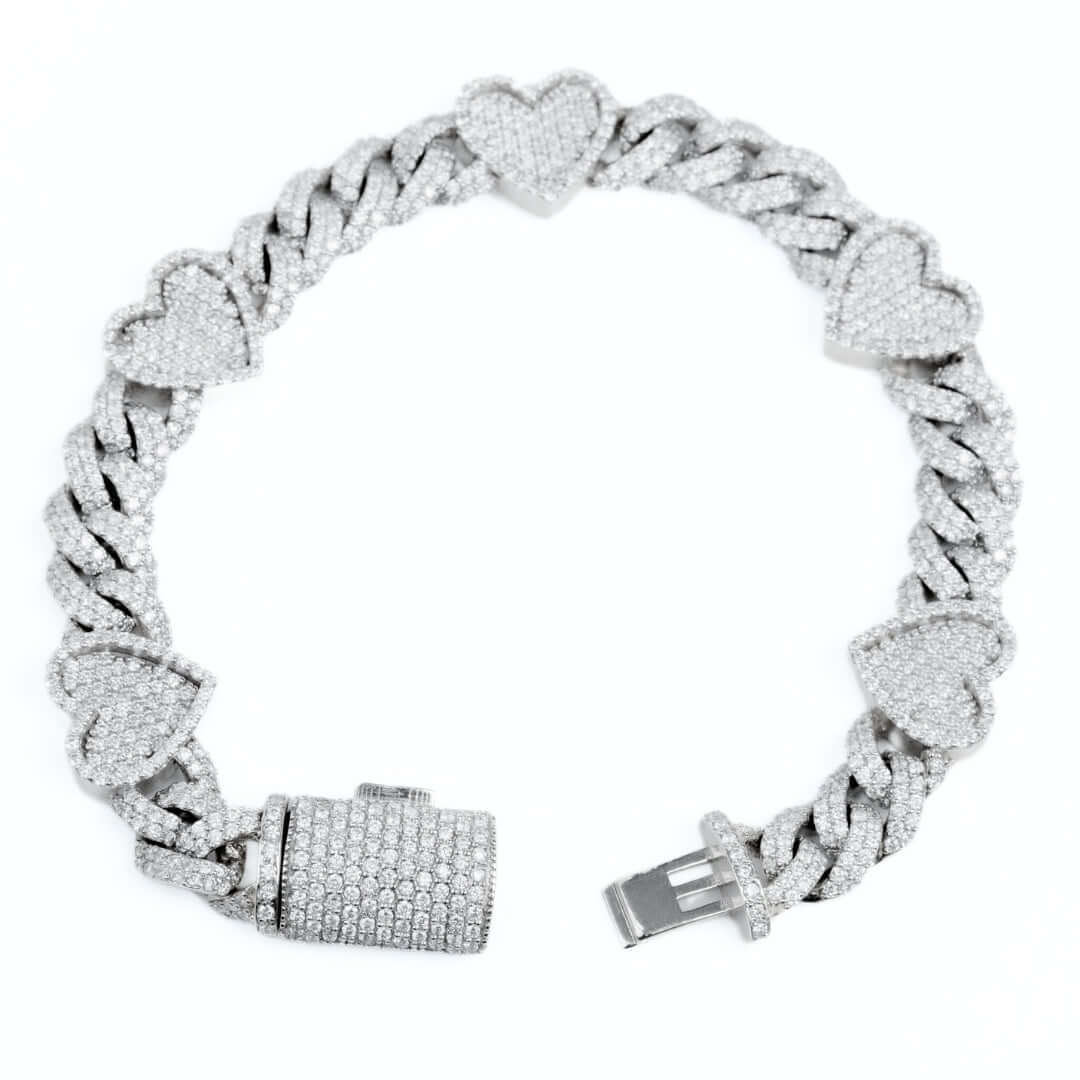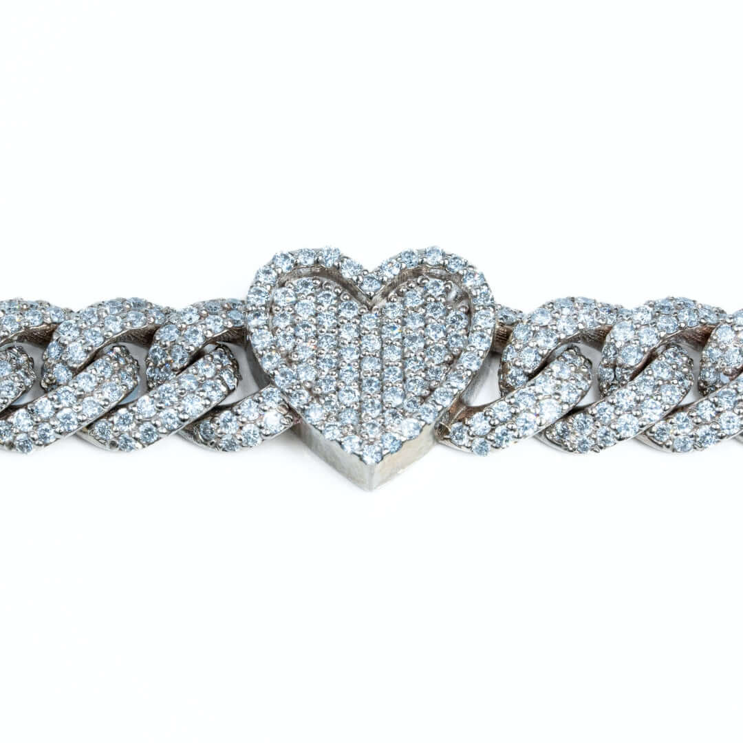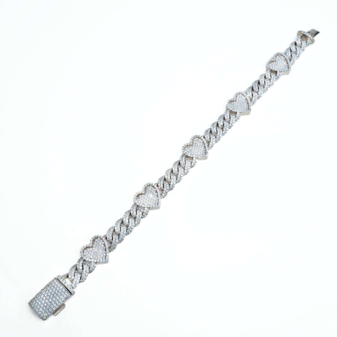 Diamond Heart Cuban Link Bracelet