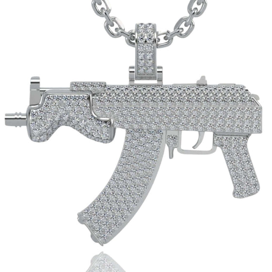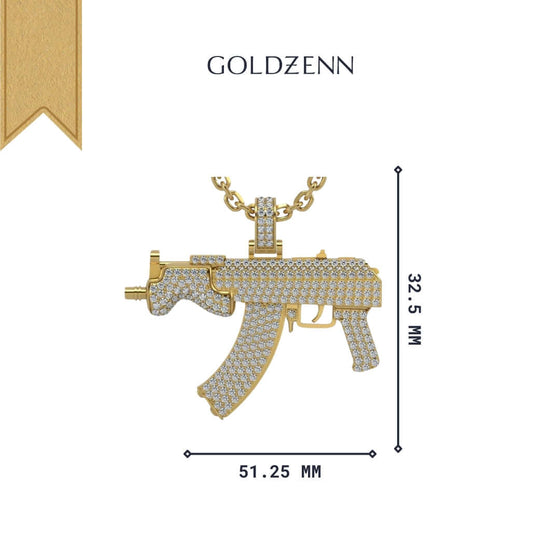 The 14K Gold Diamond Mini Draco Gun Pendant is expertly crafted from 14K solid gold, ensuring durability and a radiant shine. Enhanced with sparkling diamonds, this gold pendant offers a perfect blend of luxury and edginess. The combination of premium materials and bold design makes this diamond pendant a remarkable addition to any collection of men’s pendants.