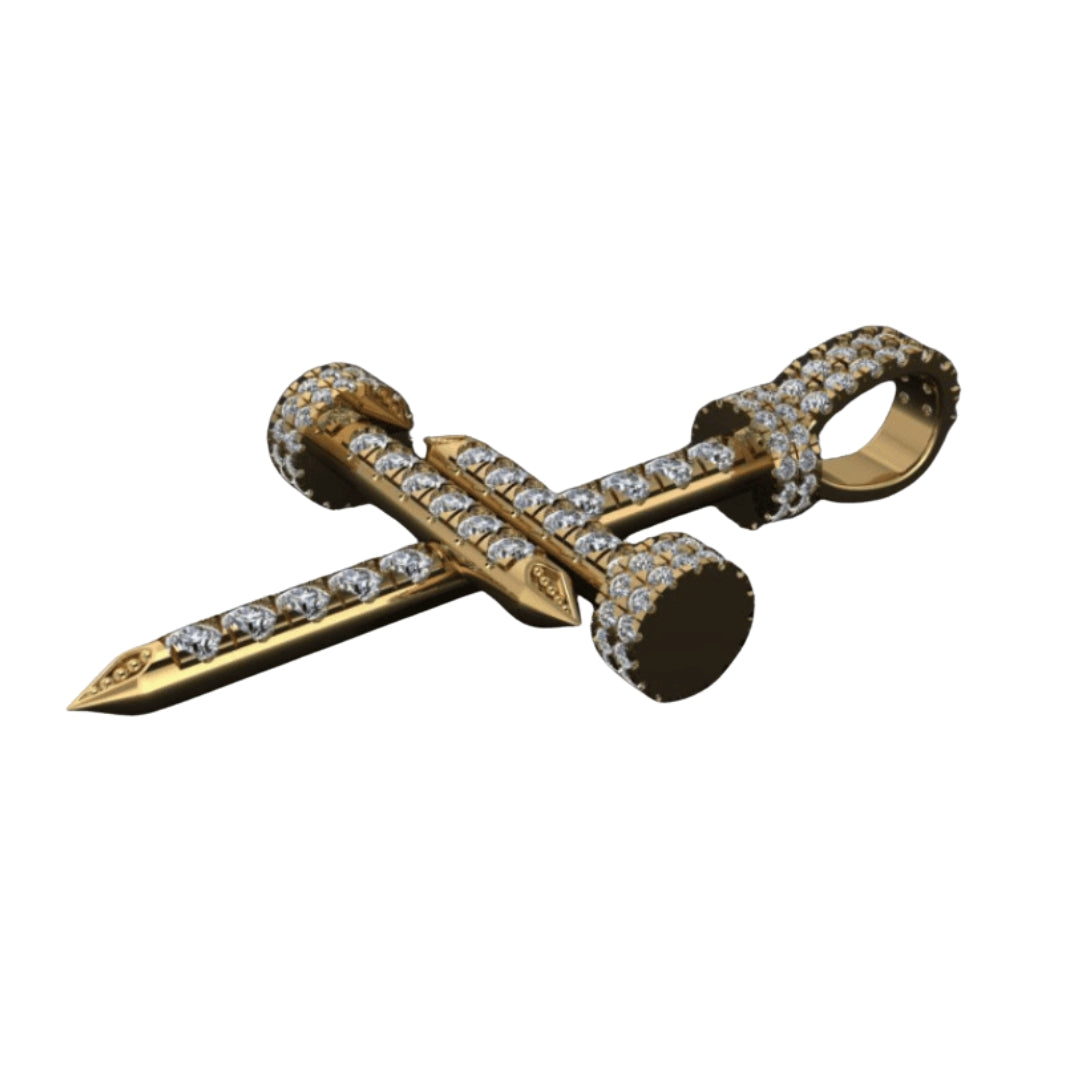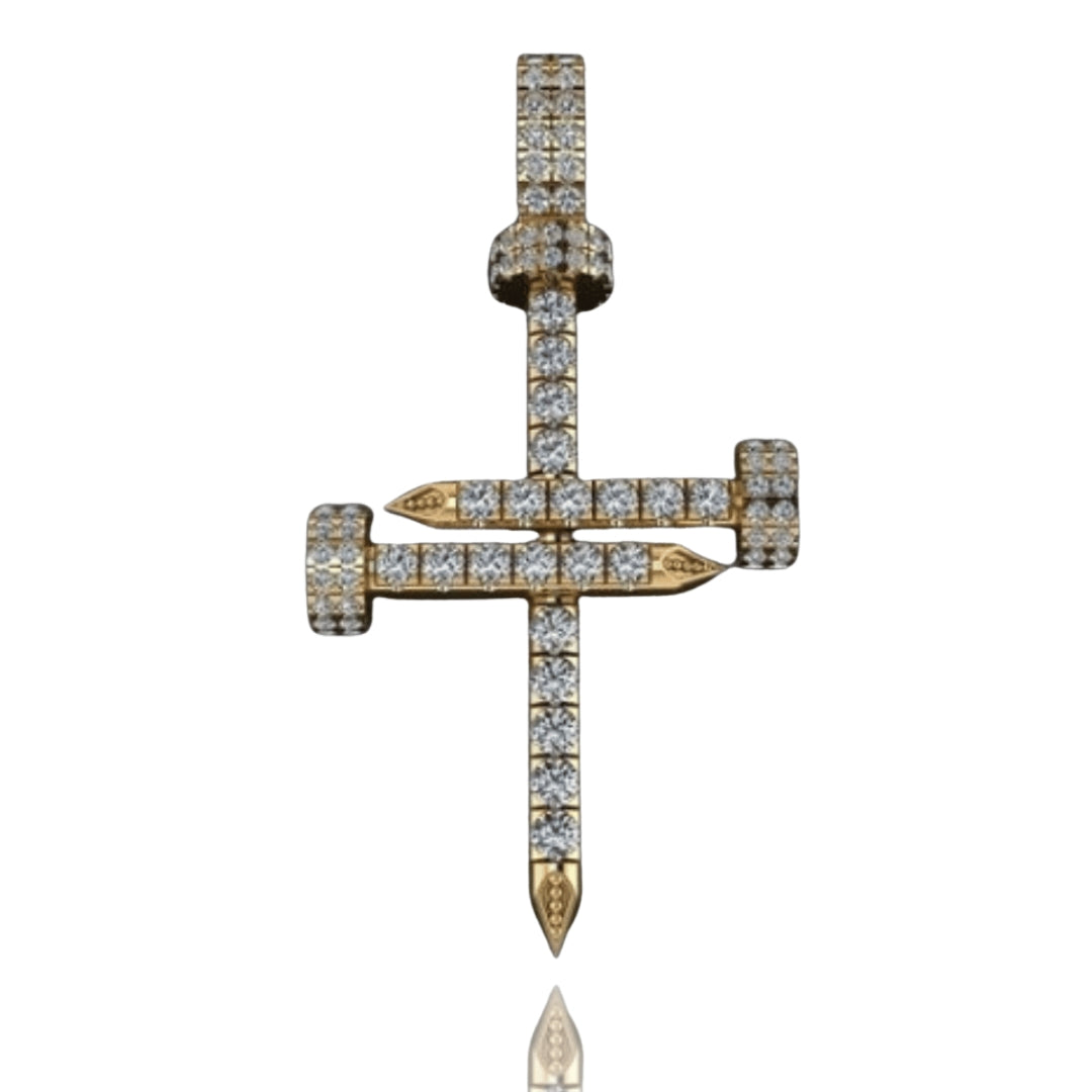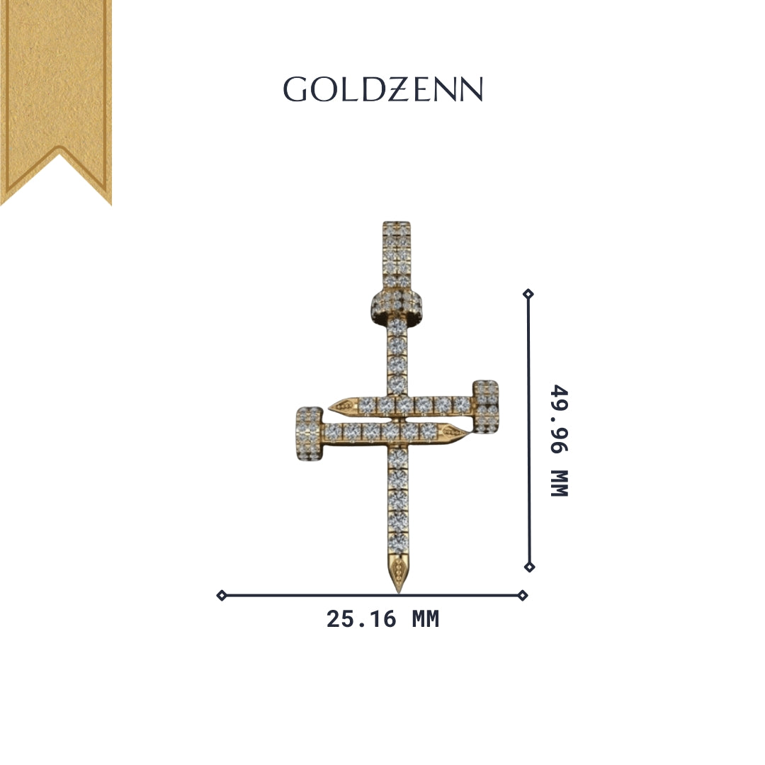 Alt="Discover our Diamond Nail Cross Pendant in 14K Gold—an elegant symbol of strength with sparkling diamonds. Shop Goldzenn’s luxury nail pendant collection."
