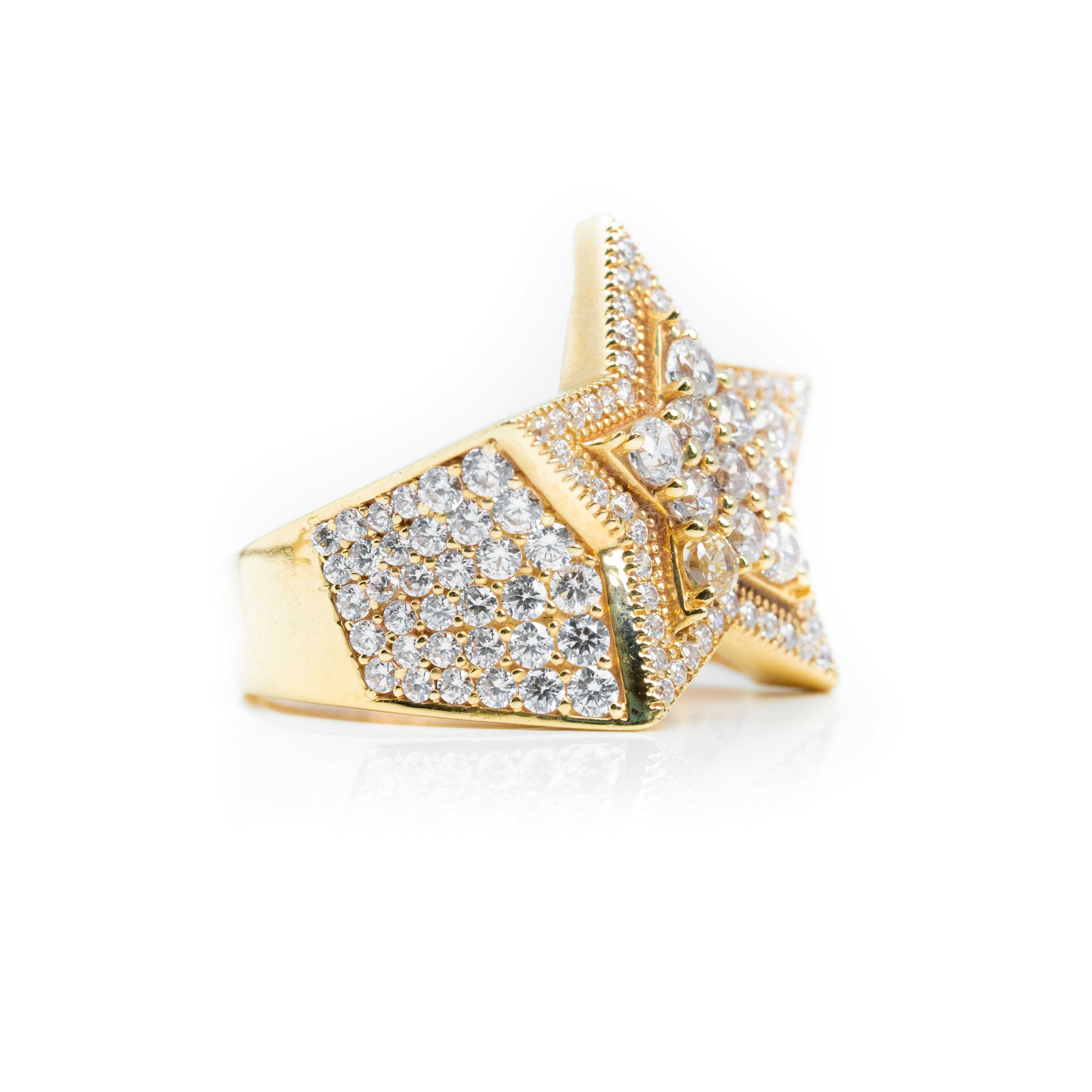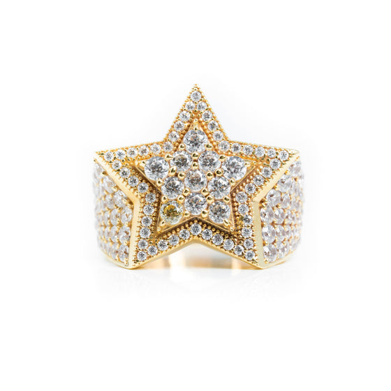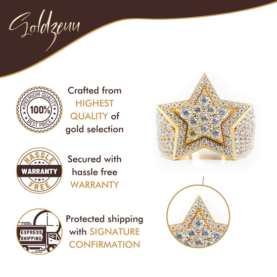 alt=" Discover timeless luxury with the Double Star Men's Ring in 14k solid gold. A bold, elegant piece designed to elevate any look with its unique star motif. "
