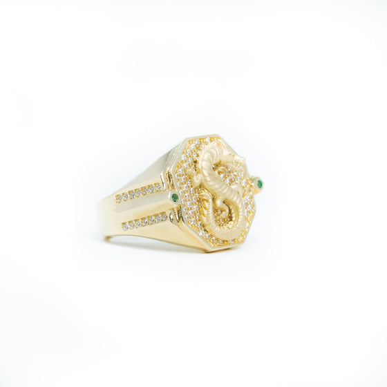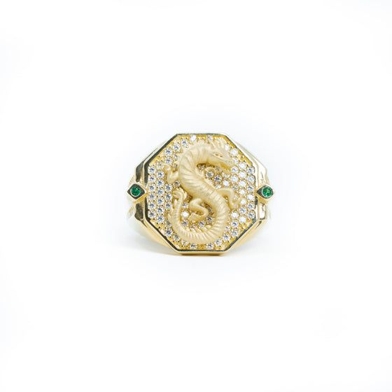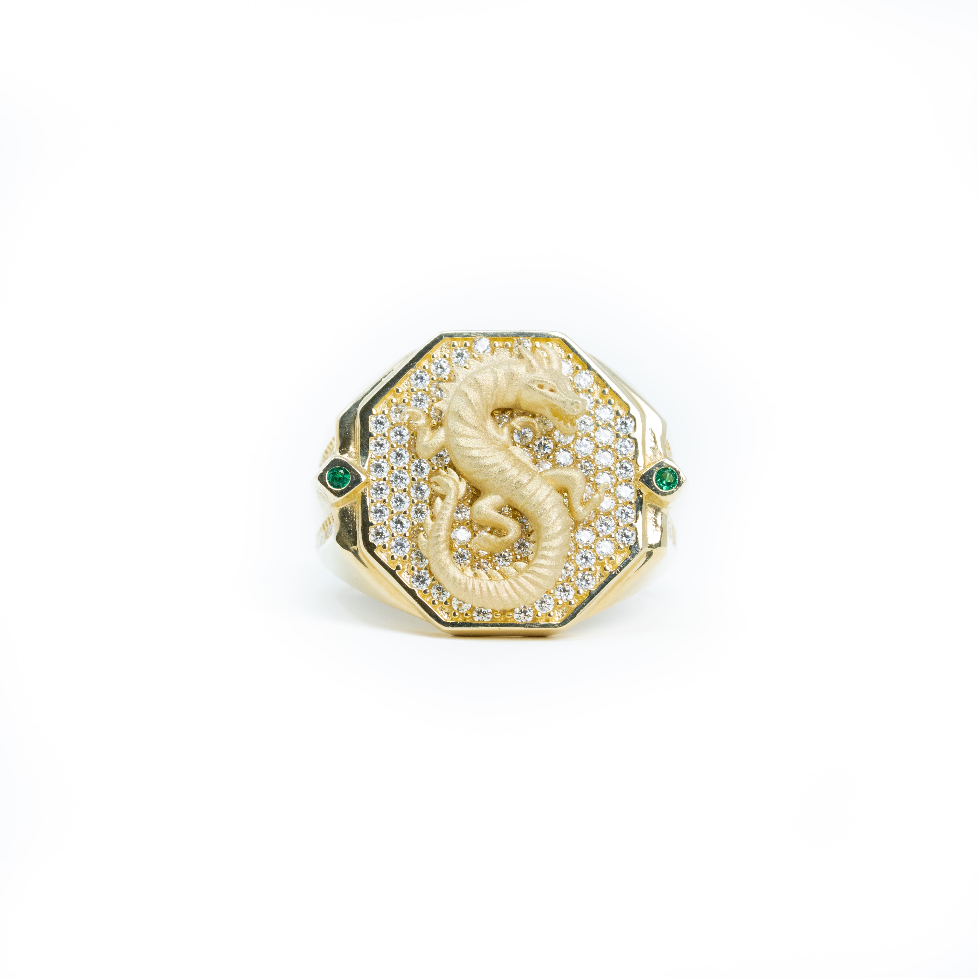 alt=" Discover the 10k Solid Gold Dragon Men's Ring featuring diamonds. This accessory embodies power, resilience, and sophistication. "