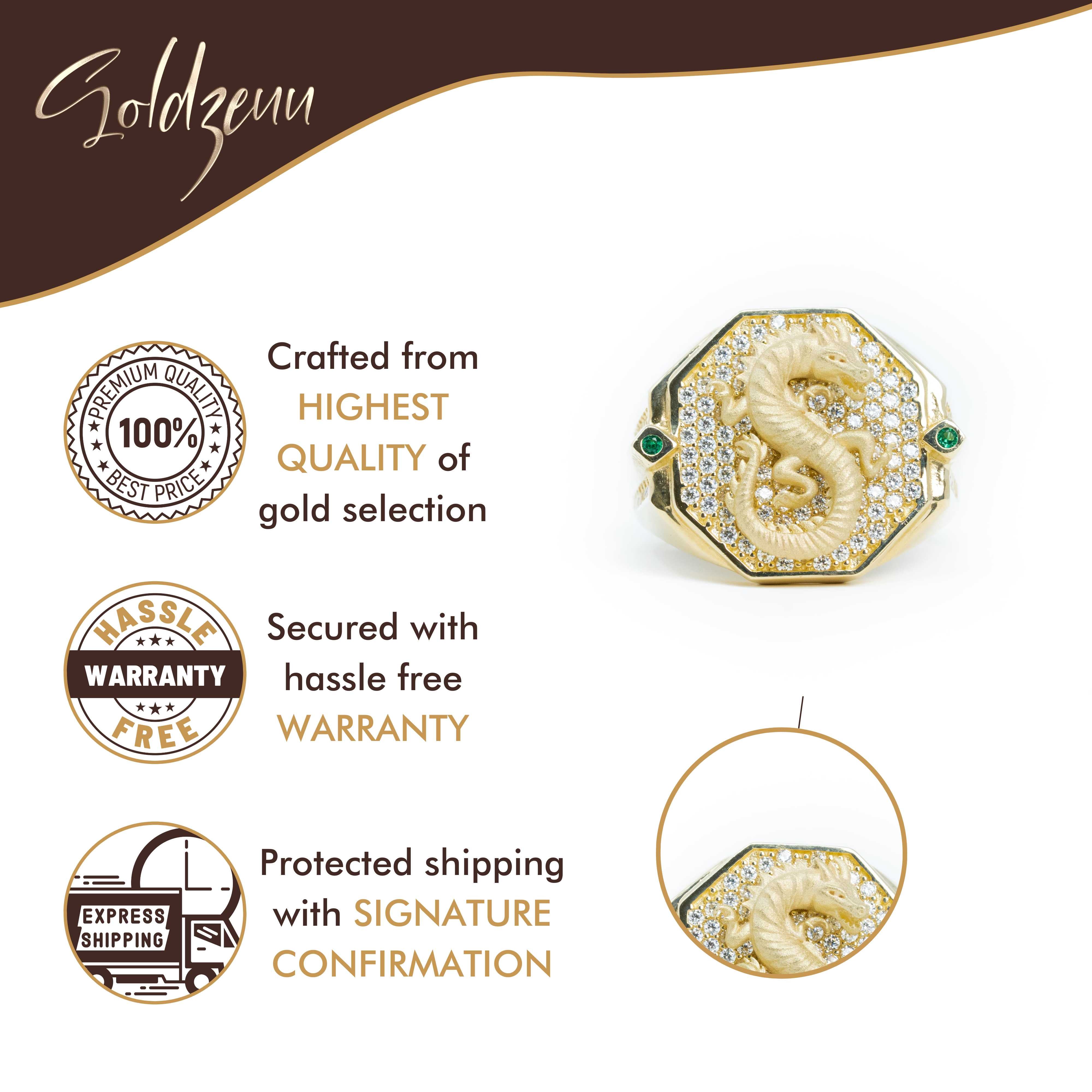 The Dragon Men Ring in 10K Solid Gold is a bold and symbolic statement of power, strength, and wisdom. Featuring an intricately detailed dragon design, this men’s gold ring exudes a striking and mythical appeal. Crafted from durable 10K solid gold, the polished finish enhances the intricate dragon motif, making it a standout accessory. Perfect for daily wear or special occasions, this solid gold ring is ideal for men who appreciate unique, meaningful, and luxurious jewelry.