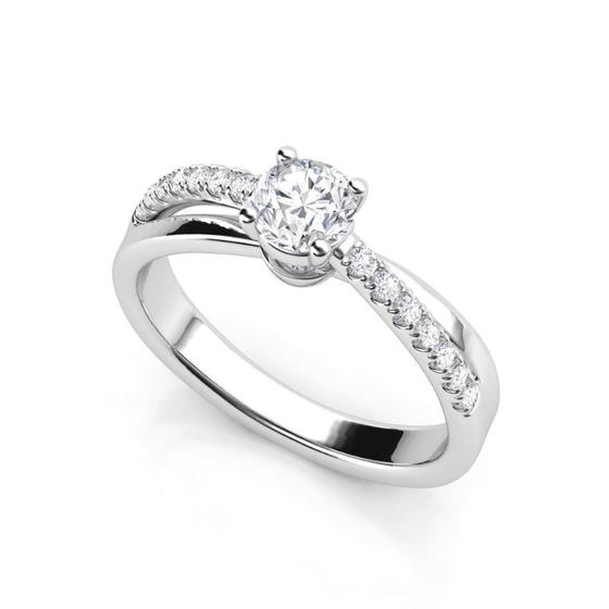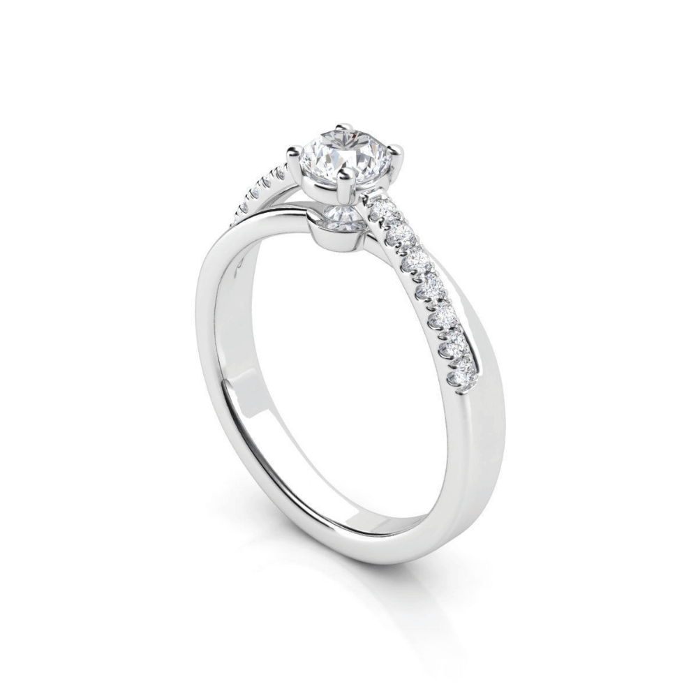 The Elegant Twist Solitaire Engagement Ring is crafted from solid 14K gold, ensuring durability and a polished finish. The twisted band provides a modern foundation for the brilliant solitaire, making this gold engagement ring an exceptional choice for everyday elegance.