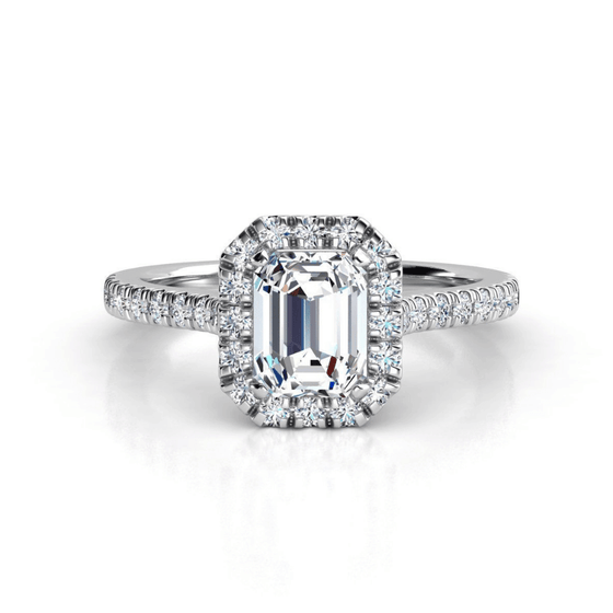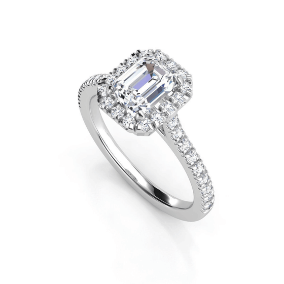 Emerald-Cut Halo Lab Diamond Engagement Ring with Pavé Band