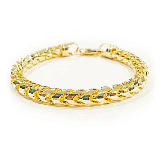 alt=" Upgrade your style with the Diamond Cut Franco Bracelet in solid yellow gold. A classic gold bracelet for men available in 1.8mm to 3.9mm widths. "