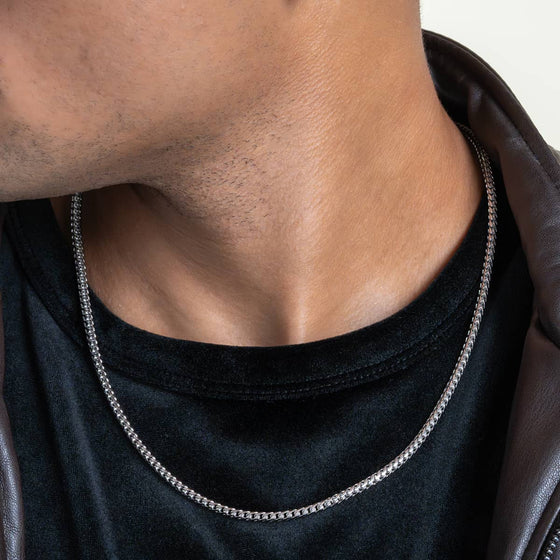 Explore our collection of Solid White Gold Franco Chains, ranging in widths from delicate 1.8mm to substantial 6.5mm. Crafted from premium solid white gold, these chains offer exceptional strength, timeless style, and a cool, sophisticated shine. The distinctive Franco chain design, known for its tightly interlocked links, provides both durability and a fluid, elegant drape.