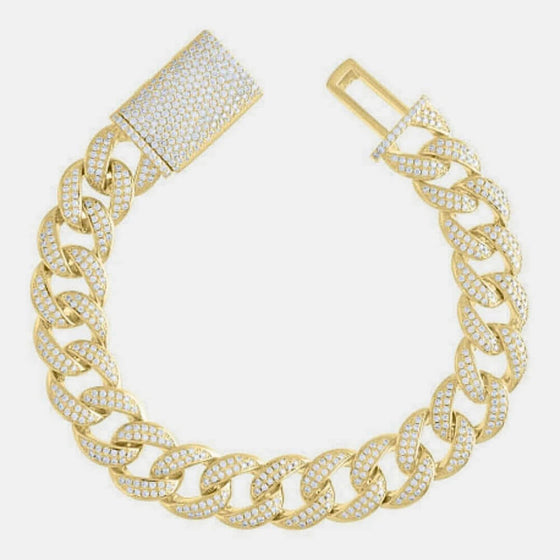 Gold Bonded Moissanite Miami Cuban Bracelet - 14mm