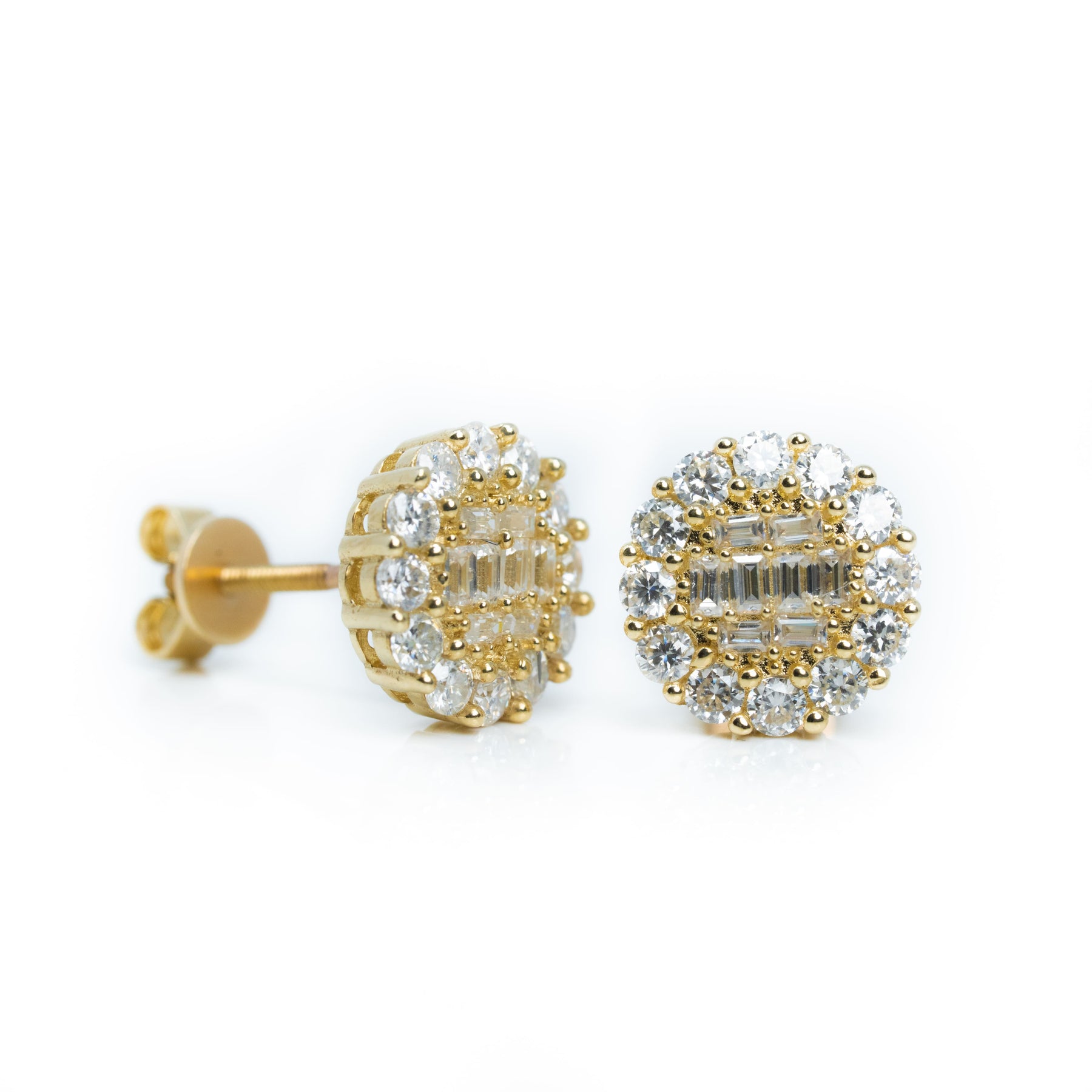 Patterned Moissanite Stud Earring - 10k Yellow Gold