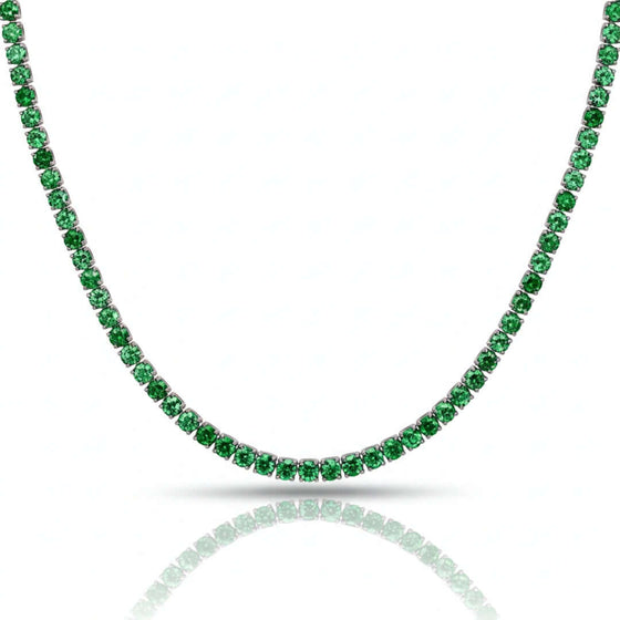 Crafted from high-quality silver and plated with rhodium, this chain offers both durability and a bright, tarnish-resistant finish. The secure box lock ensures this beautiful piece stays safely in place. Whether you're wearing it to add a pop of color and personality to your look or to make a subtle statement, this green moissanite tennis chain is a unique and stylish choice.