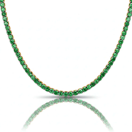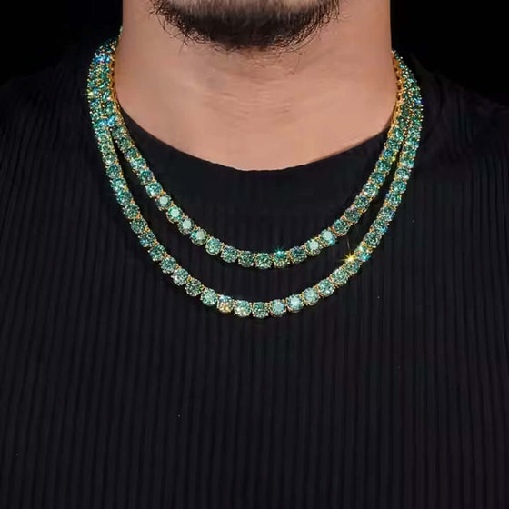 alt=" Discover the 3mm Green Moissanite Tennis Chain at Goldzenn, featuring vibrant green moissanite stones set in 925 sterling silver. Sleek, bold, and fully iced out. "