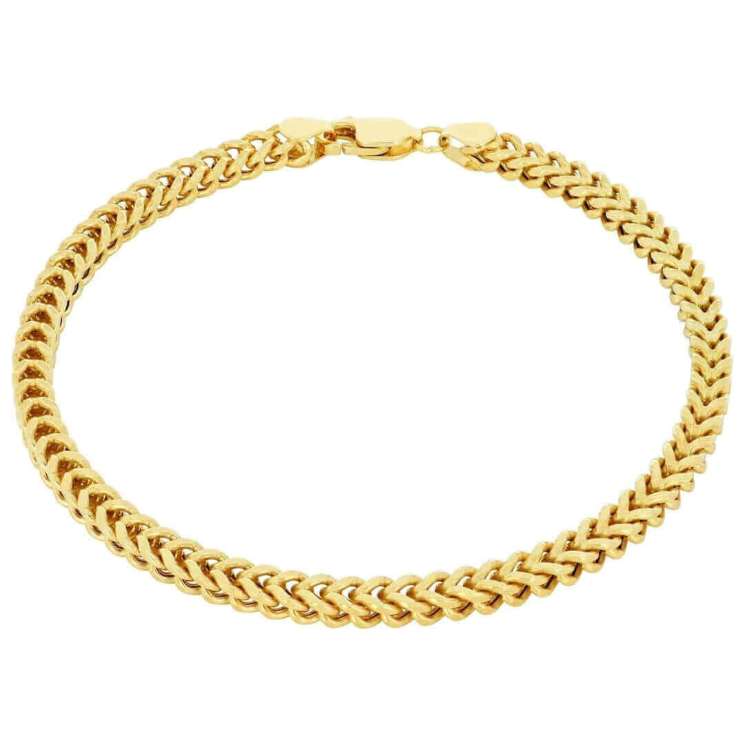 Alt=" 2.2mm Yellow Gold Franco Bracelet in 10k or 14k gold. Sleek, durable V-links with polished shine. Minimalist, strong, and perfect for daily wear."