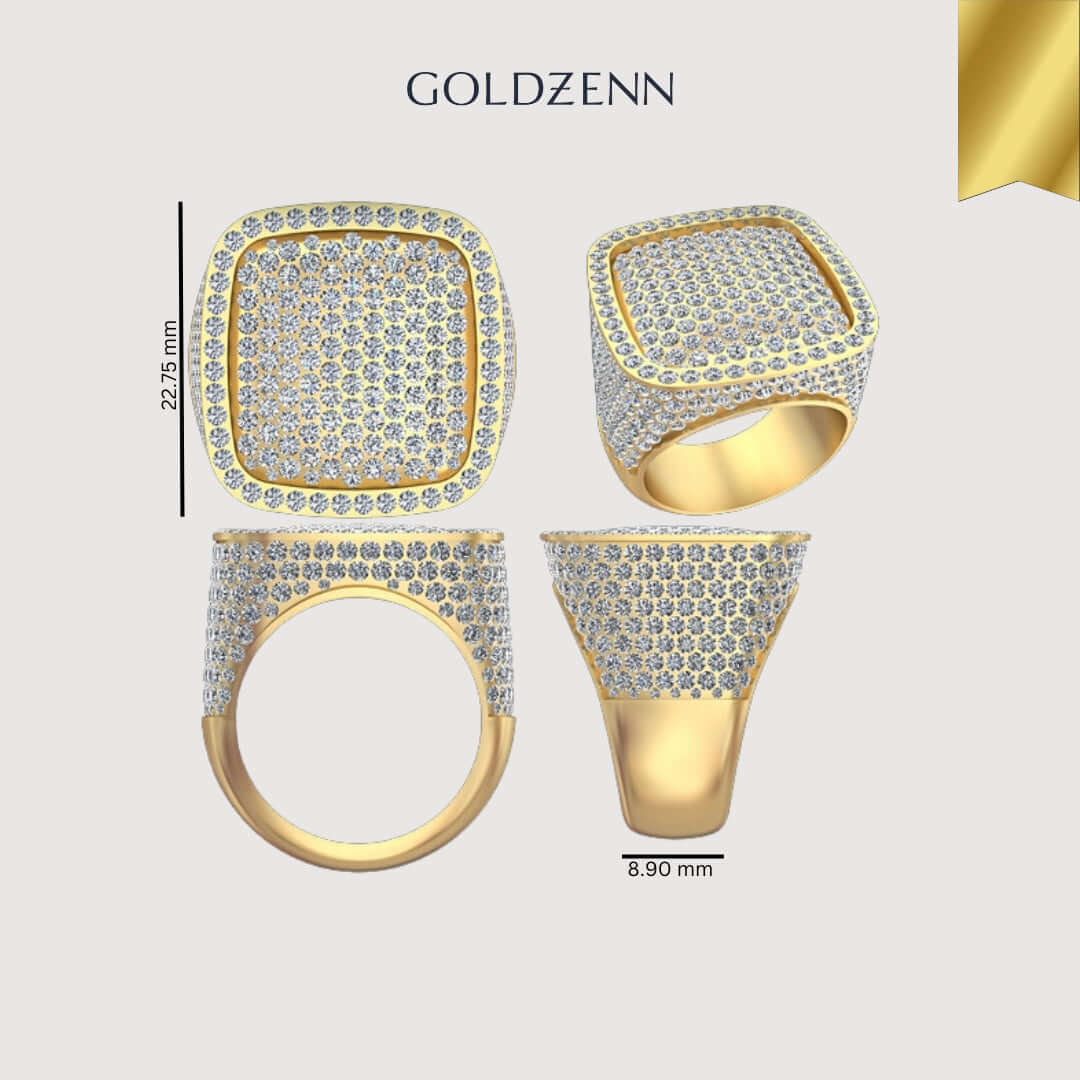Elevate your style with the Iced Cushion Diamond Ring – 6.48 CT Pavé Design, a dazzling men's gold ring crafted for bold sophistication. Featuring a cushion-shaped pavé design encrusted with 6.48 CT of lab-grown diamonds, this piece is the epitome of luxury. Perfect for those seeking gold men's rings or iconic men rings gold, it is available in white gold, yellow gold, and rose gold. Whether you’re searching for gold diamond rings or standout diamond rings, this design offers unmatched brilliance and elegance.