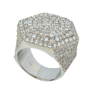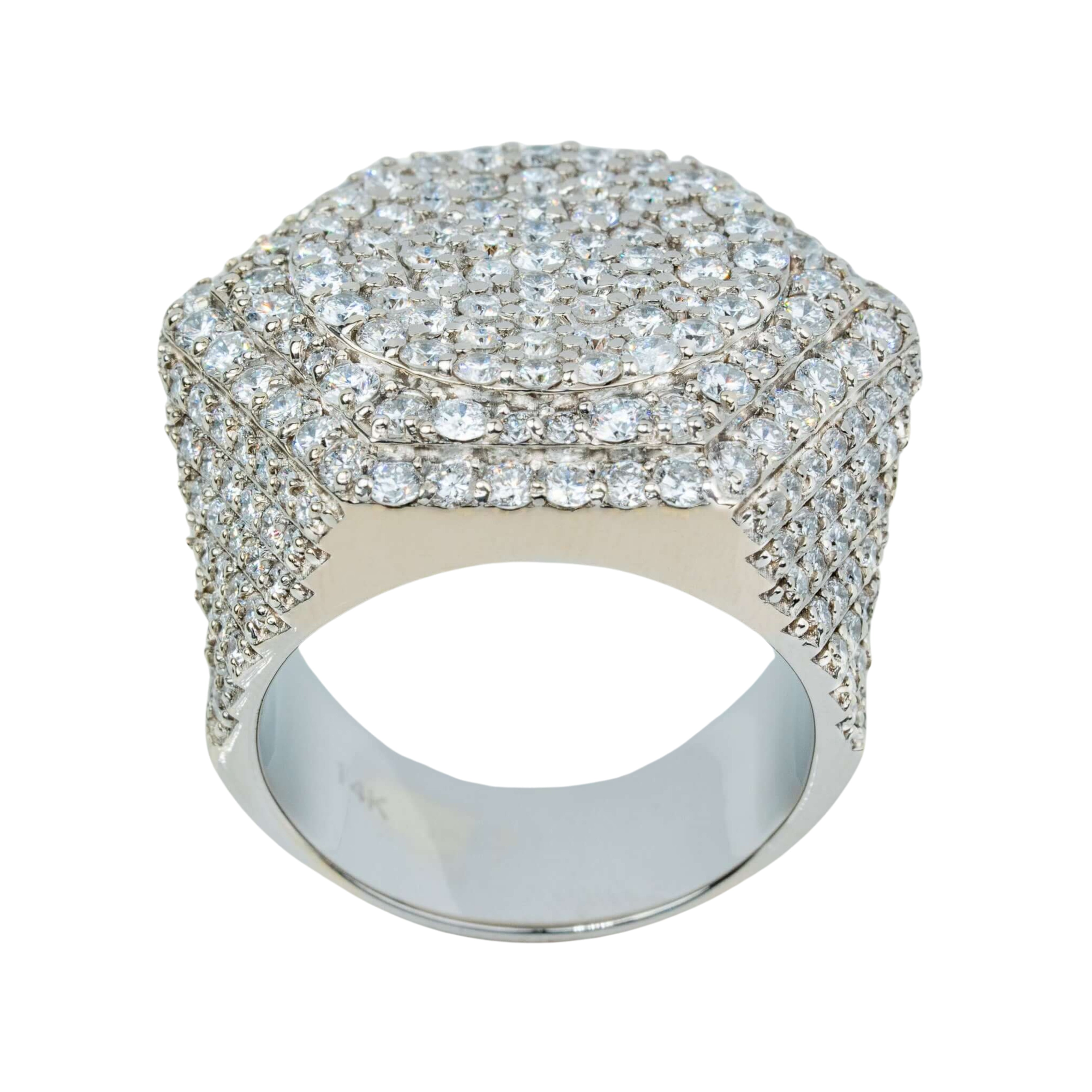 Iced-Out Octagon Cluster Ring - 6.04 CT - 14k White Gold