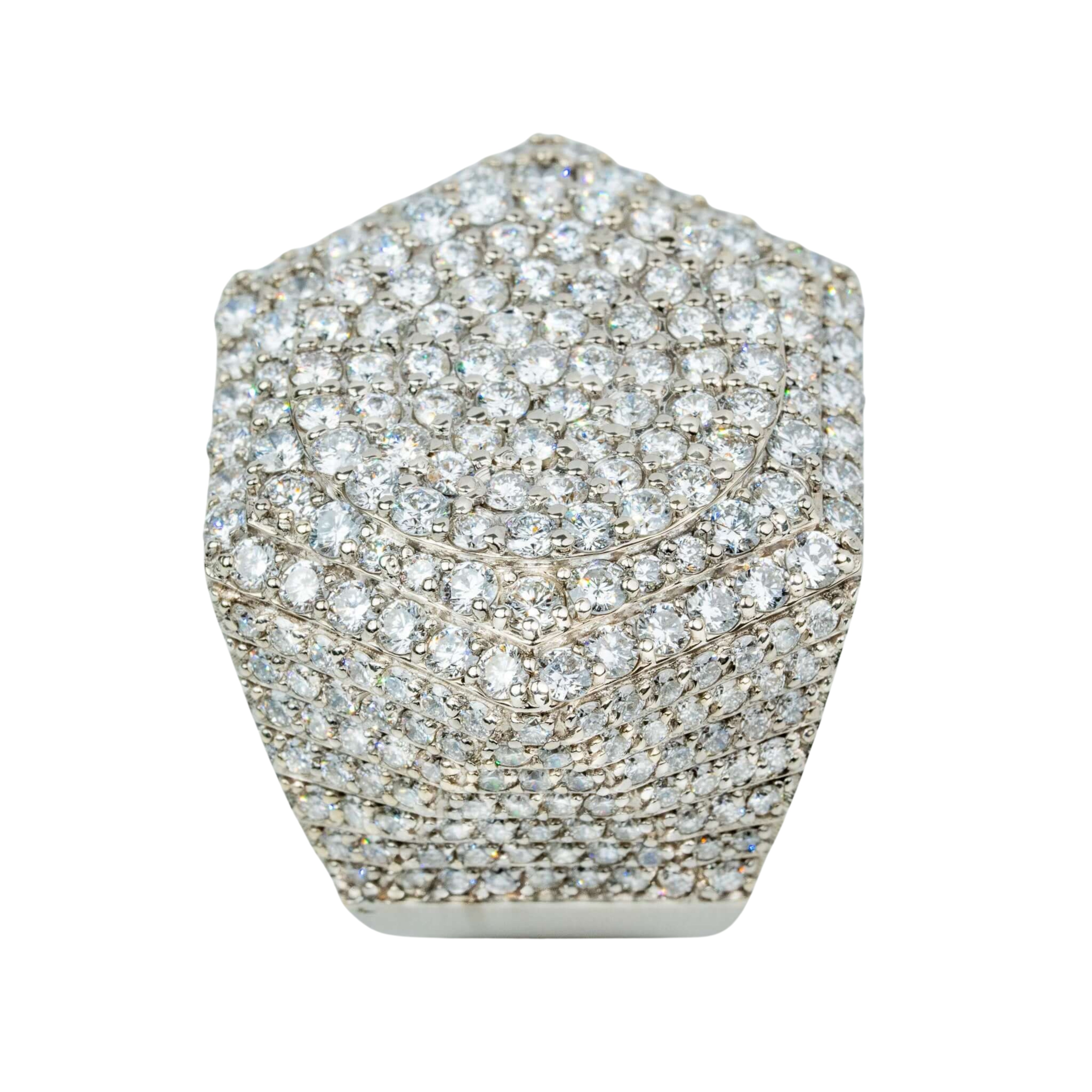 The Iced-Out Octagon Cluster Ring in 14K White Gold is a bold and striking statement piece. Featuring 6.04 carats total weight of dazzling diamonds arranged in an octagonal cluster, this ring offers unmatched brilliance and modern sophistication. The sleek 14K white gold band complements the sparkle of the diamonds, creating a refined and luxurious look. Perfect for special occasions or everyday luxury, this solid gold ring is ideal for those who appreciate contemporary elegance and exquisite craftsmanship.