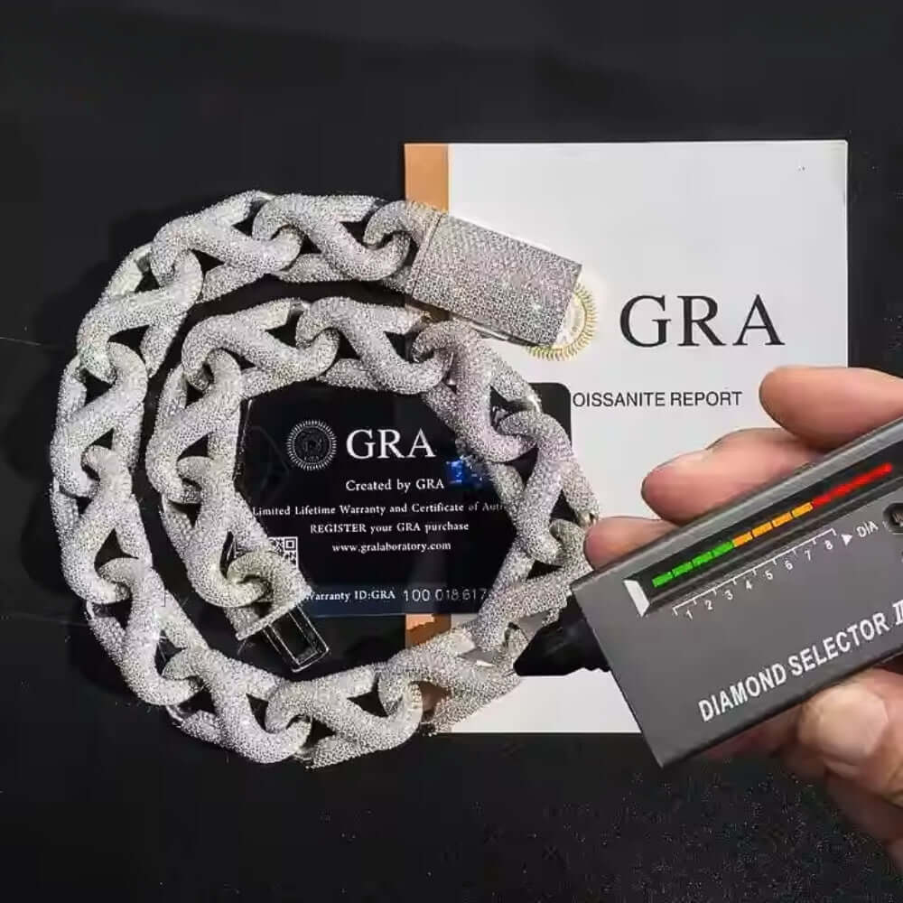 Crafted in hypoallergenic 925 sterling silver, the GOLDZENN Iced Out Silver Moissanite Cuban Link Bracelet merges bold luxury with dazzling VVS moissanites in pristine D color. The 20mm Cuban links, encrusted with meticulously set stones, are polished to a tarnish-resistant mirror finish for enduring brilliance. Featuring a secure lobster clasp and lightweight durability, this bracelet transitions effortlessly from casual ensembles to formal elegance. Presented in luxury packaging, it embodies GOLDZENN’s commitment to craftsmanship and modern sophistication, making it a striking gift or a standout addition to your jewelry collection.