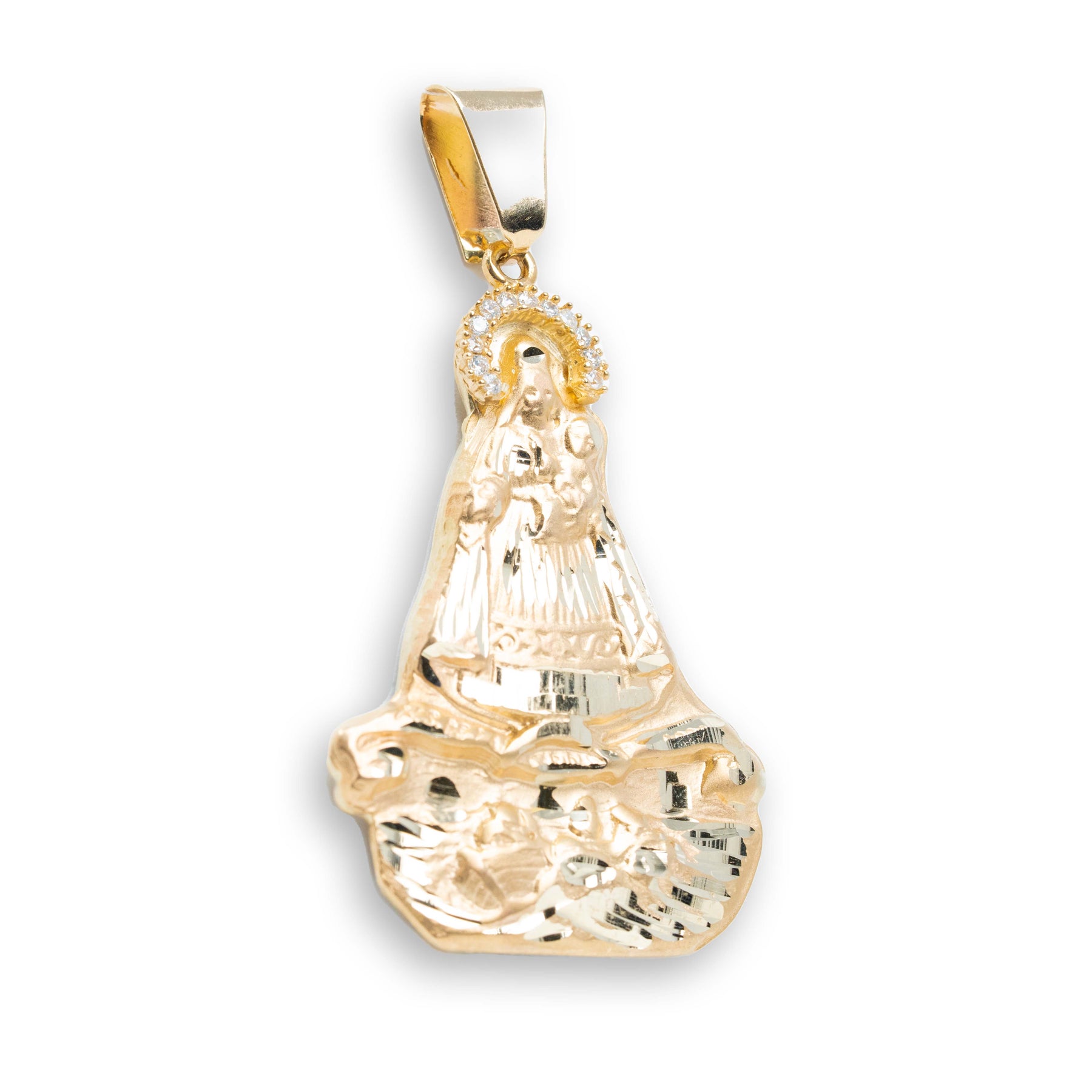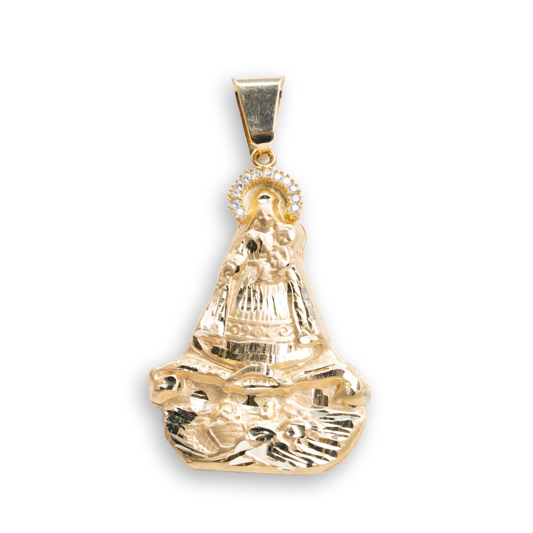Caridad Del Cobre Pendant with CZ Stones - 14k Solid Yellow Gold